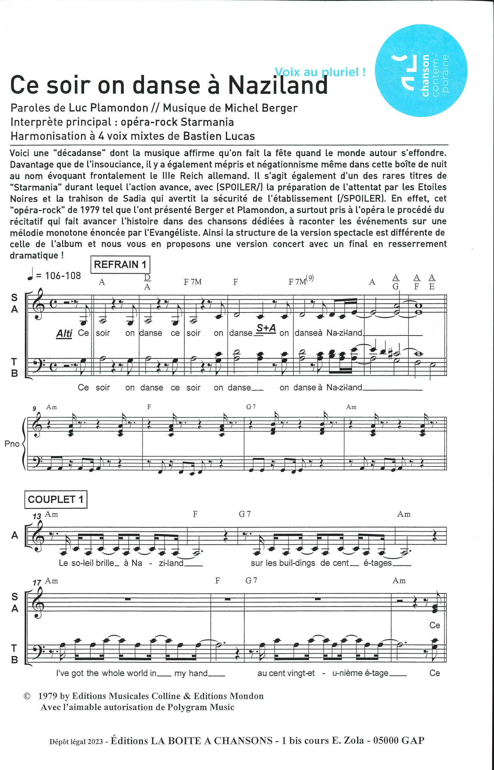 Paroles et musique : Plamondon / Berger Harmonisation : Bastien Lucas