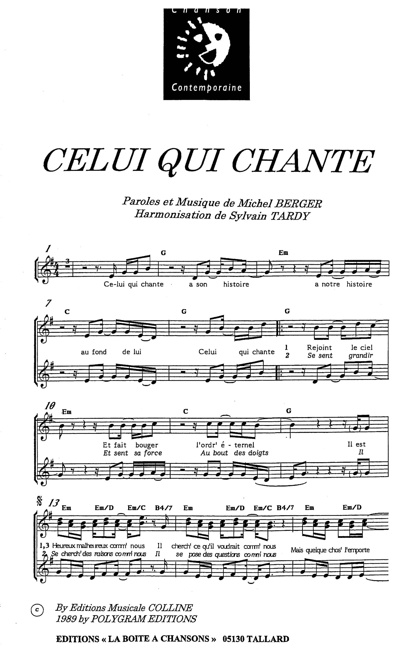 Paroles et musique de BERGER Harmonisation : Sylvain TARDY