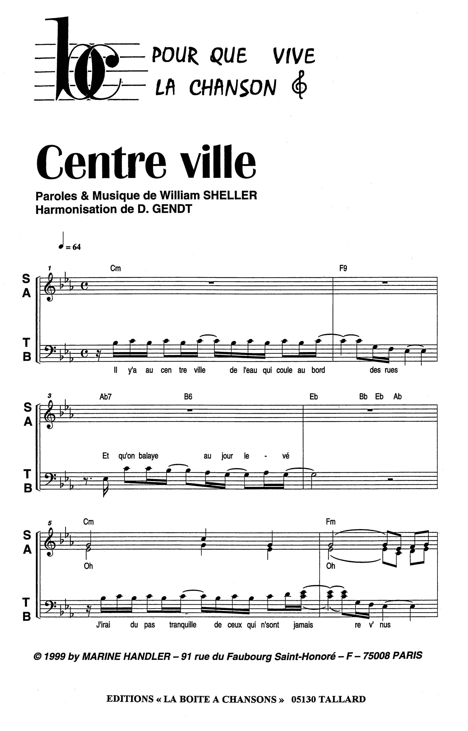 Paroles et musique de SHELLER Harmonisation : Didier GENDT