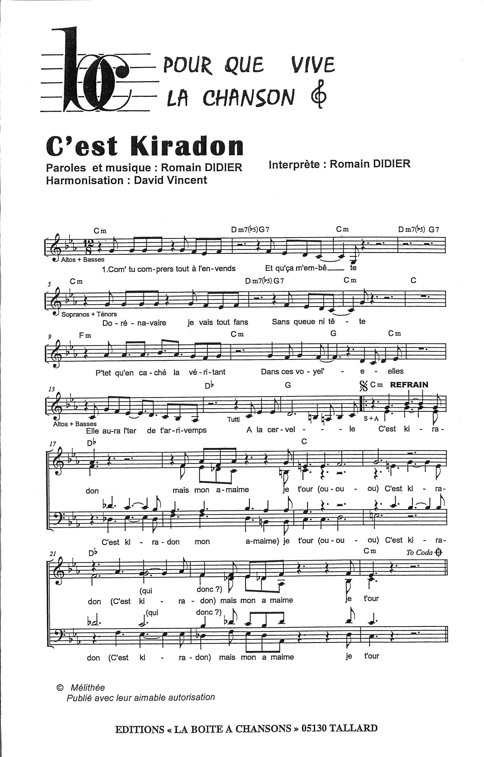 Paroles et musique de DIDIER Harmonisation : David VINCENT