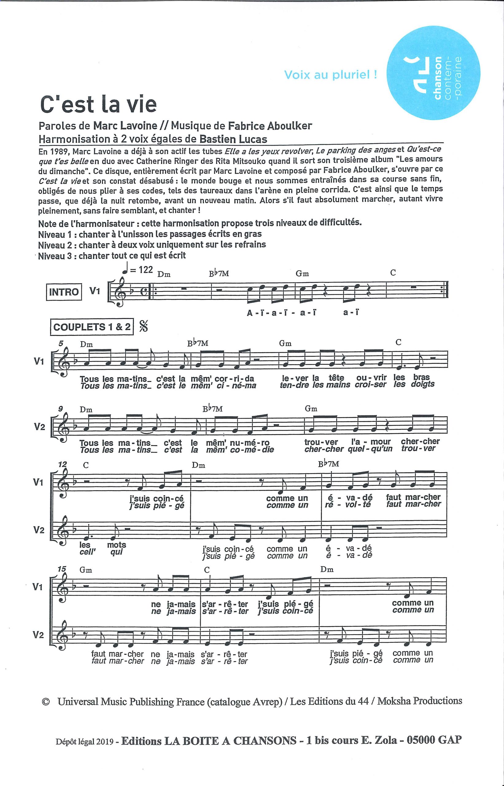 Paroles et musique : M. Lavoine / F. Aboulker Harmonisation : Bastien Lucas