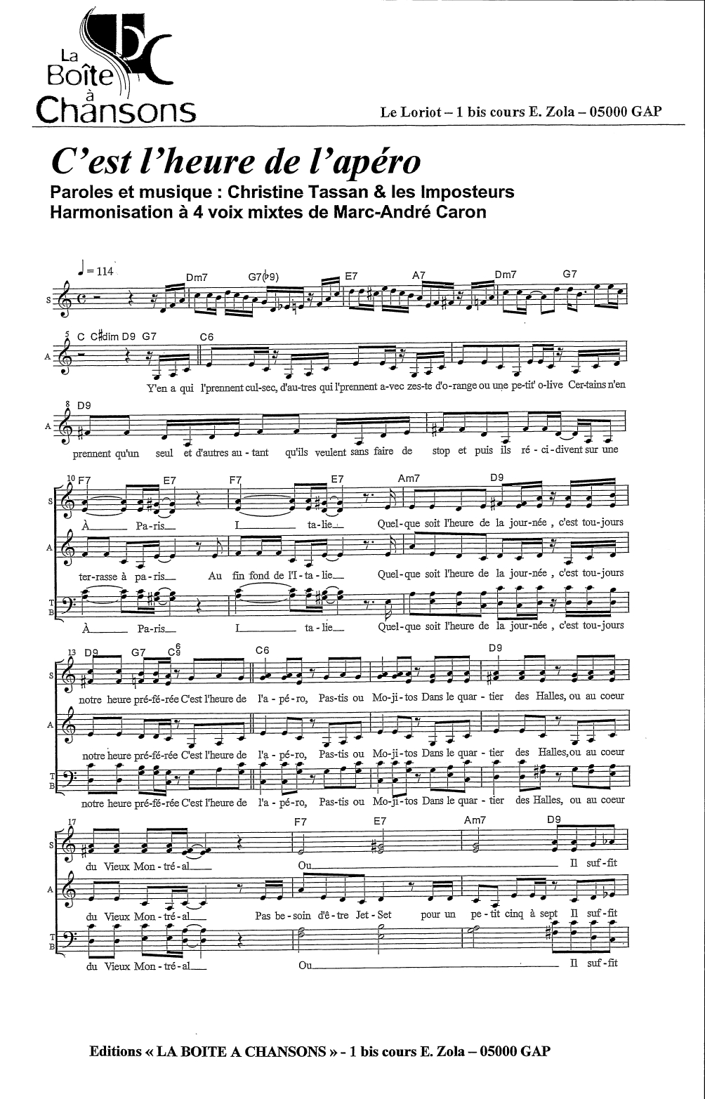 Paroles et musique : Christine Tassan et Les Imposteurs