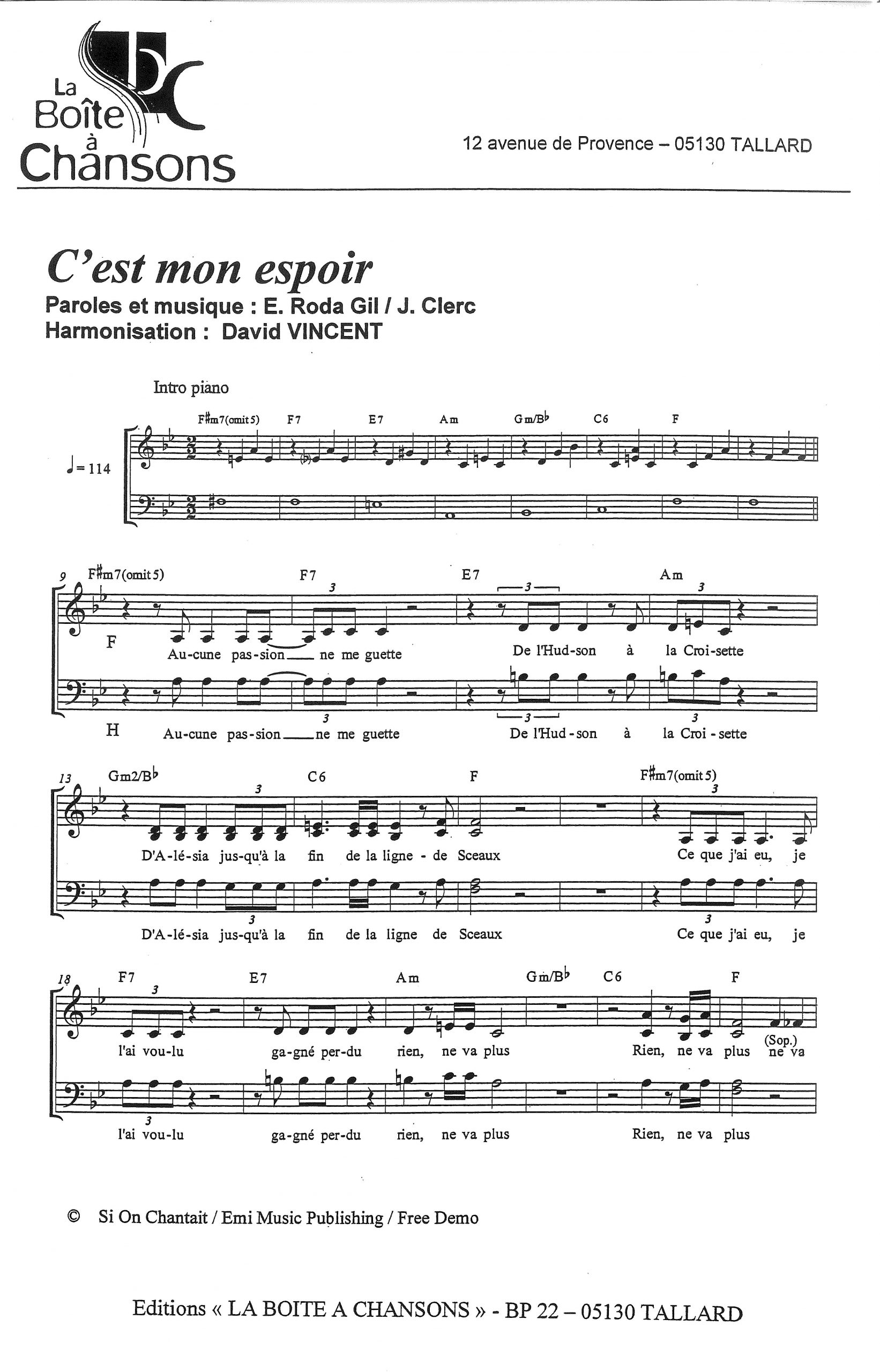 Paroles et musique : E. Roda Gil / J. Clerc Harmonisation : David VINCENT