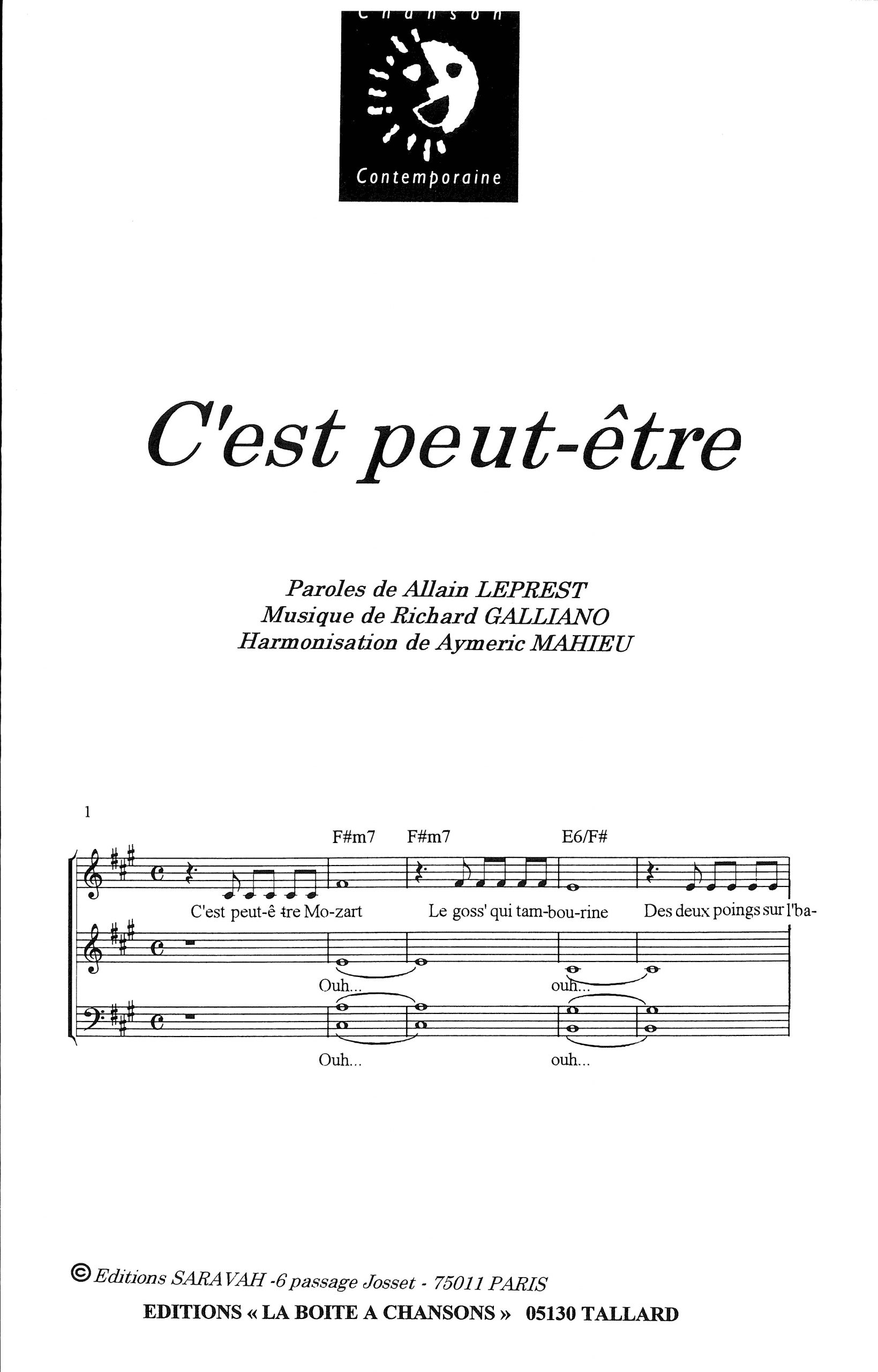 Paroles et musique de LEPREST/GALLIANO Harmonisation : Aymeric MAHIEU
