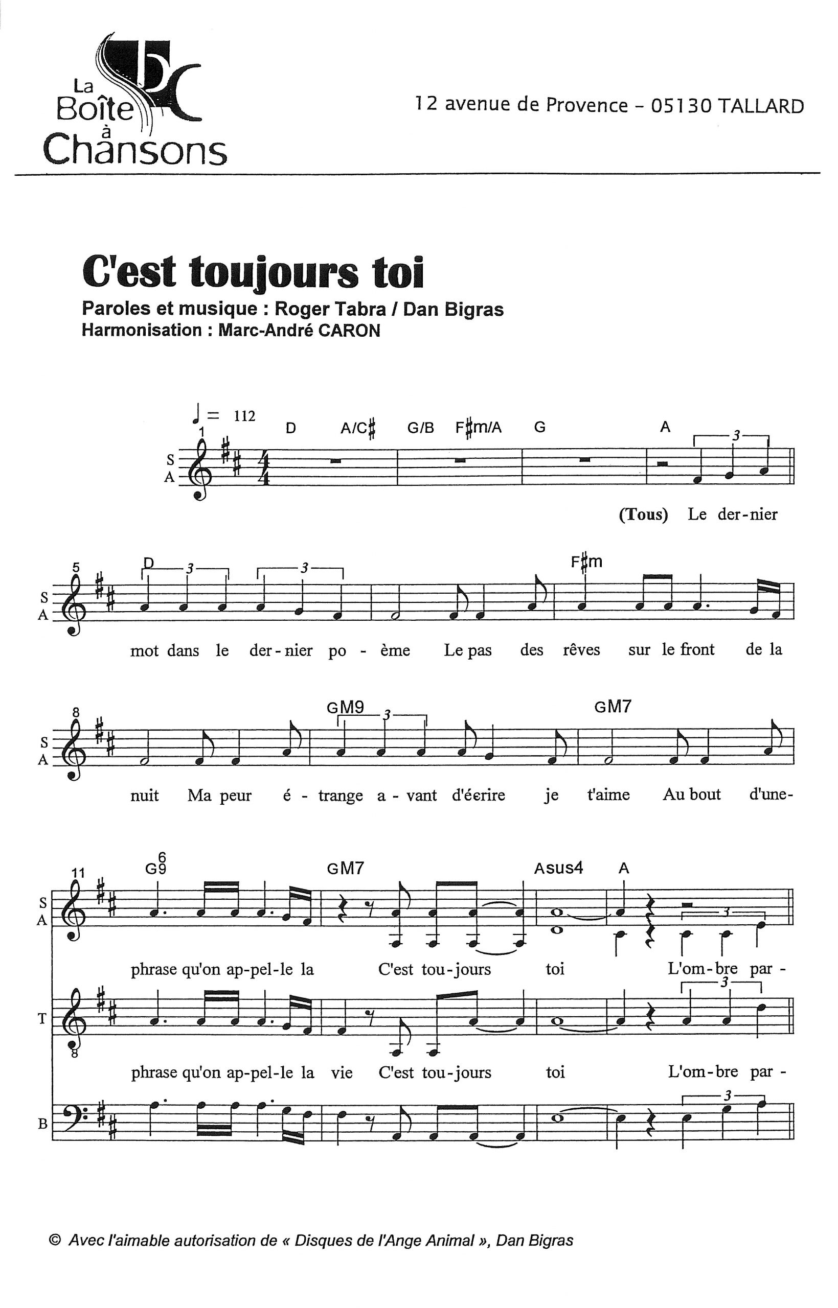 Paroles et musique de TABRA/BIGRAS Harmonisation : Marc André CARON