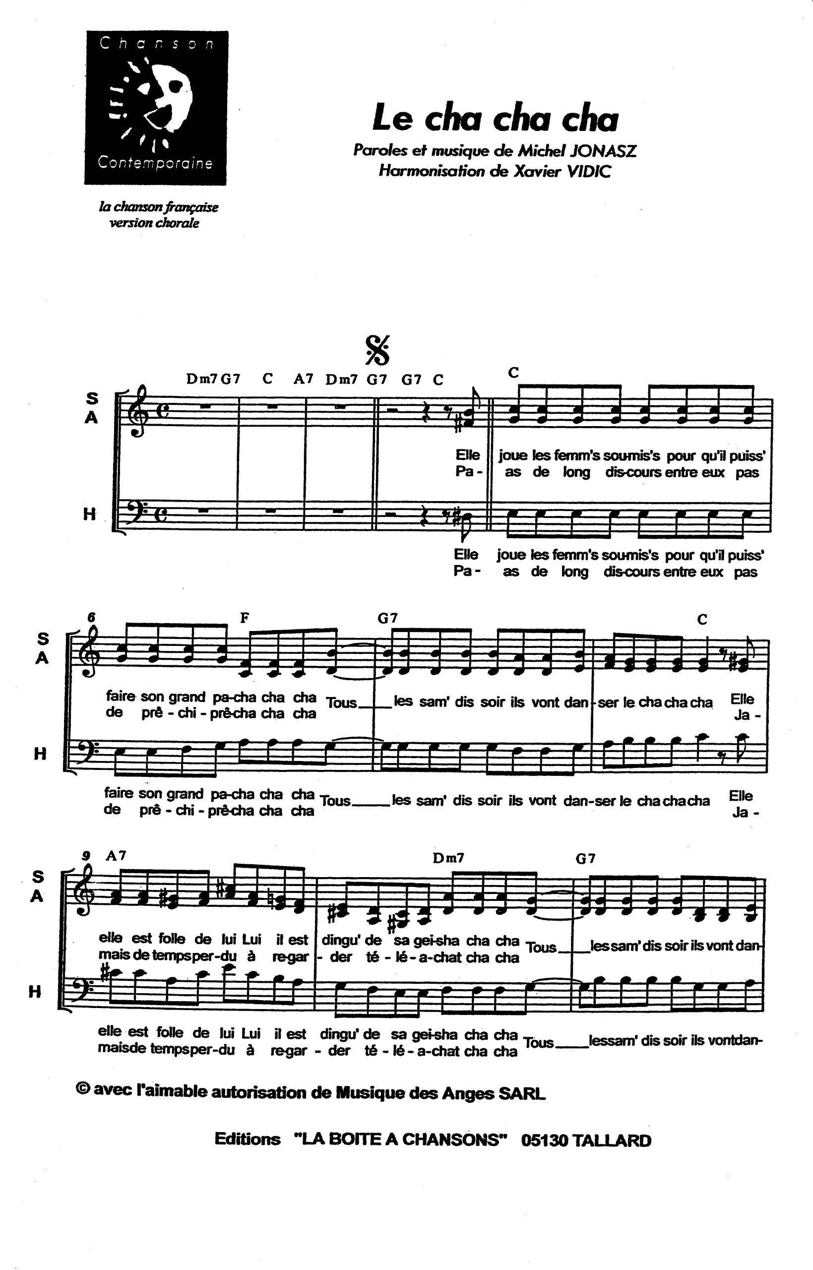 Paroles et musique de JONASZ Harmonisation : Xavier VIDIC