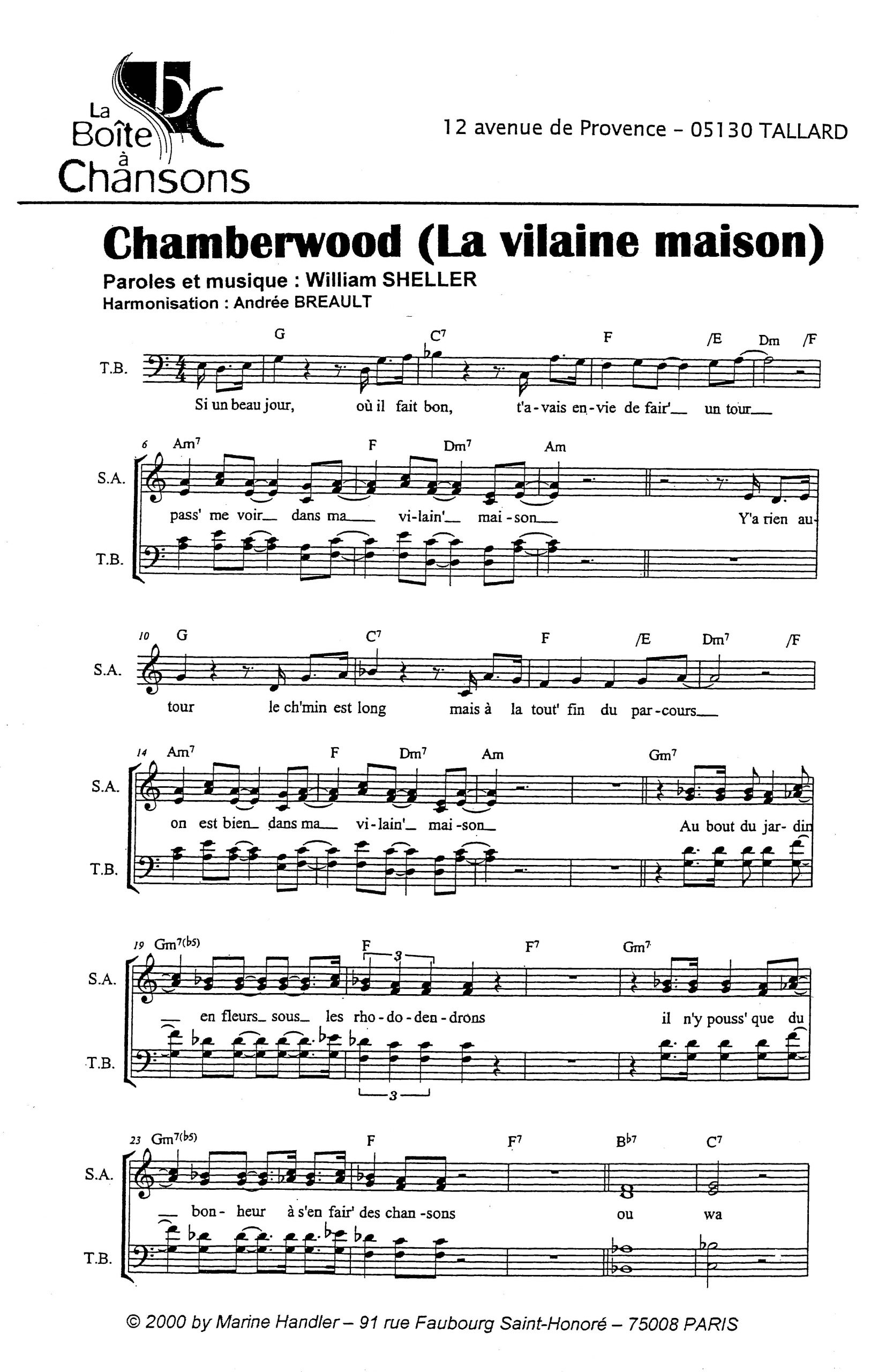 Paroles et musique de SHELLER Harmonisation : Andrée BREAULT