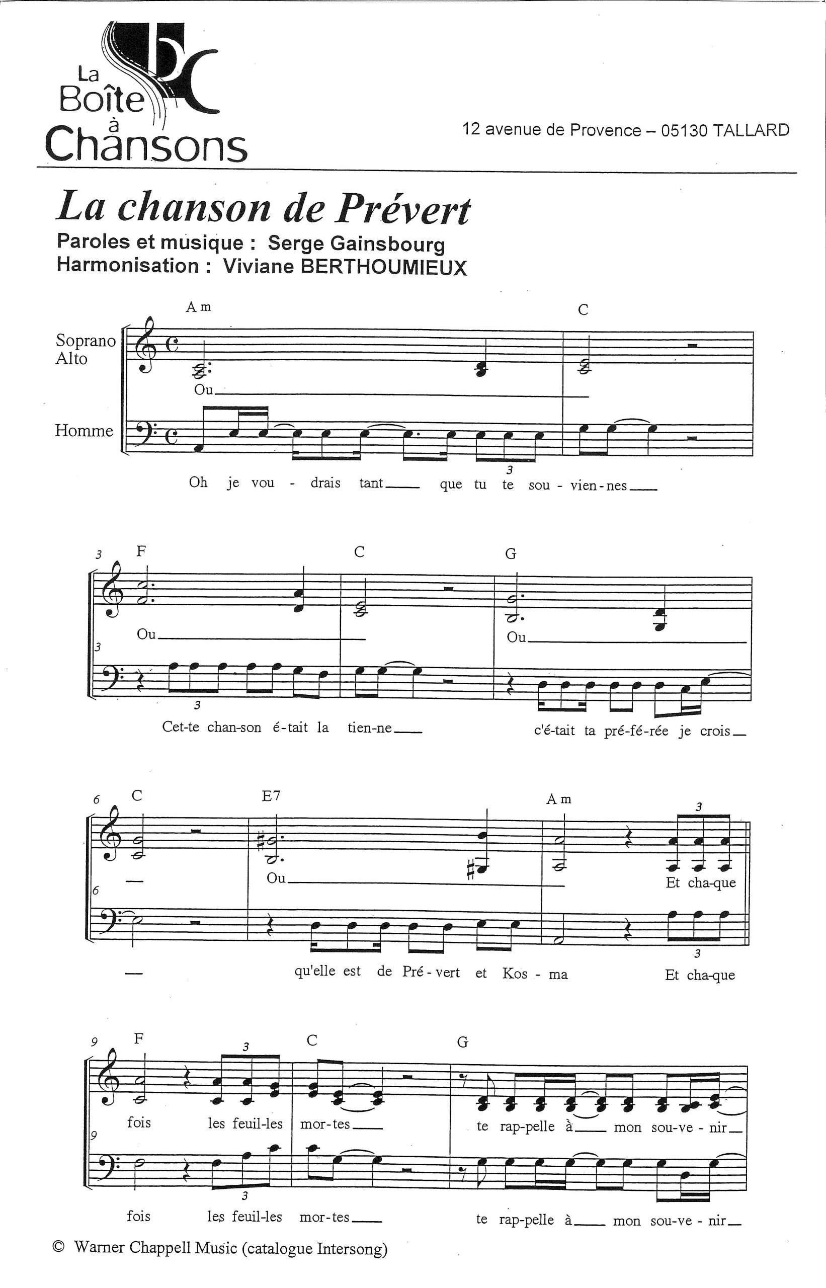Paroles et musique : Gainsbourg Harmonisation : Viviane BERTHOUMIEUX