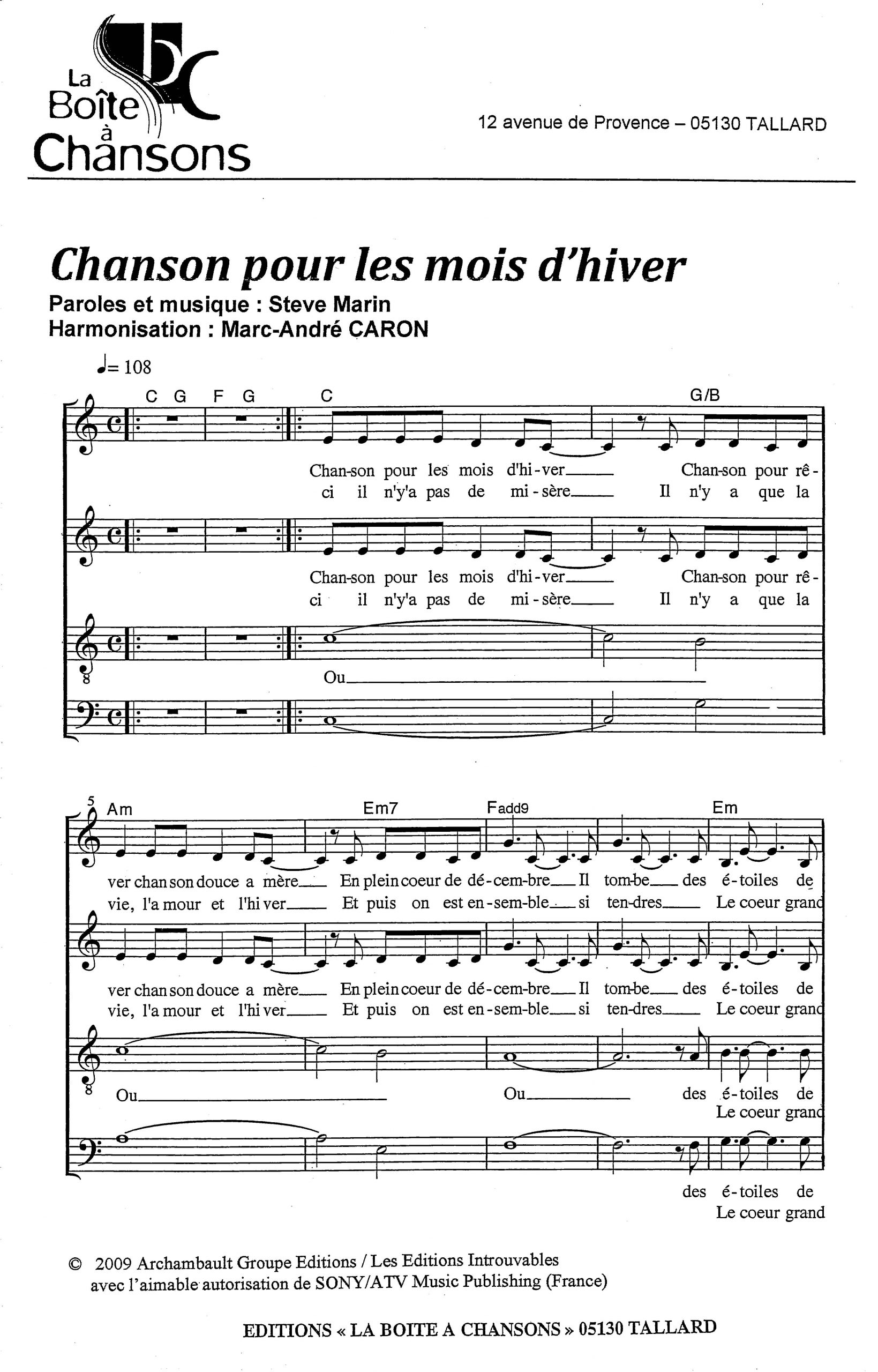 Paroles et musique de MARIN Harmonisation : Steve MARIN Harmonisation : Marc André CARON