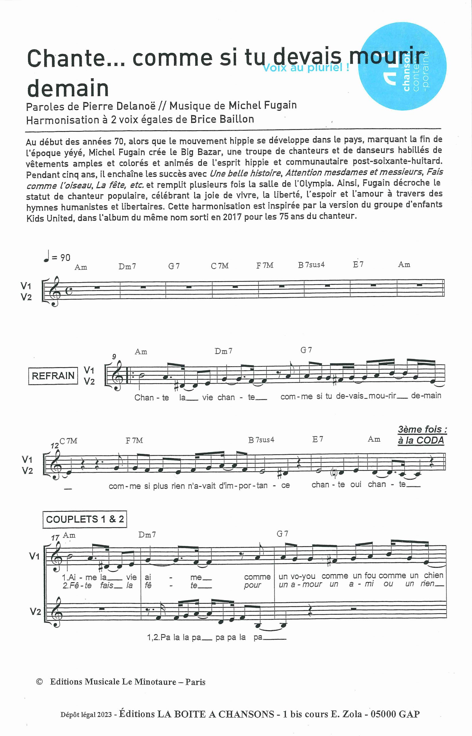 Paroles et musique : P.Delanoë / M. Fugain Harmonisation : Brice Baillon