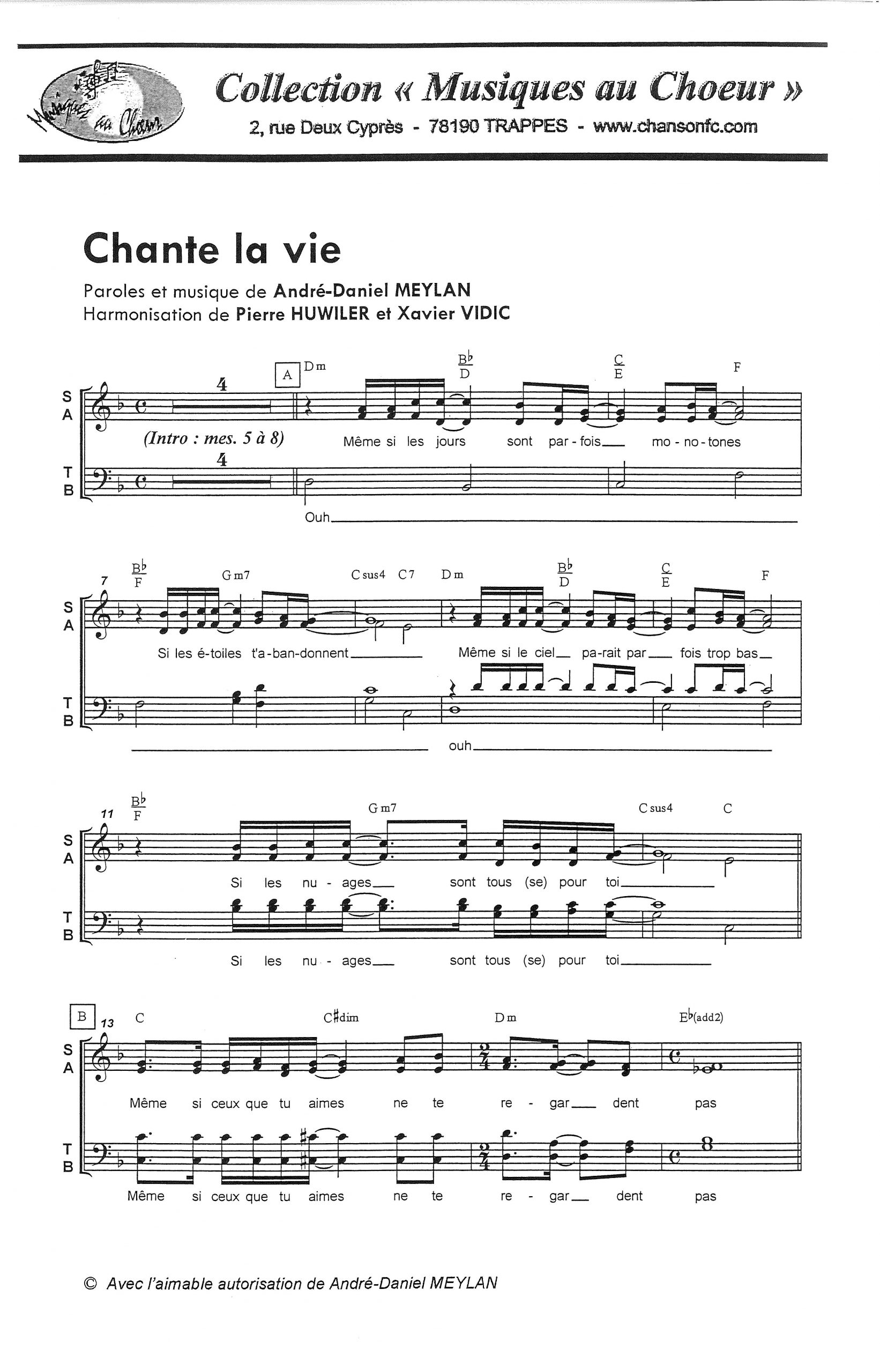 Paroles et musique de MEYLAN Harmonisation : Xavier VIDIC