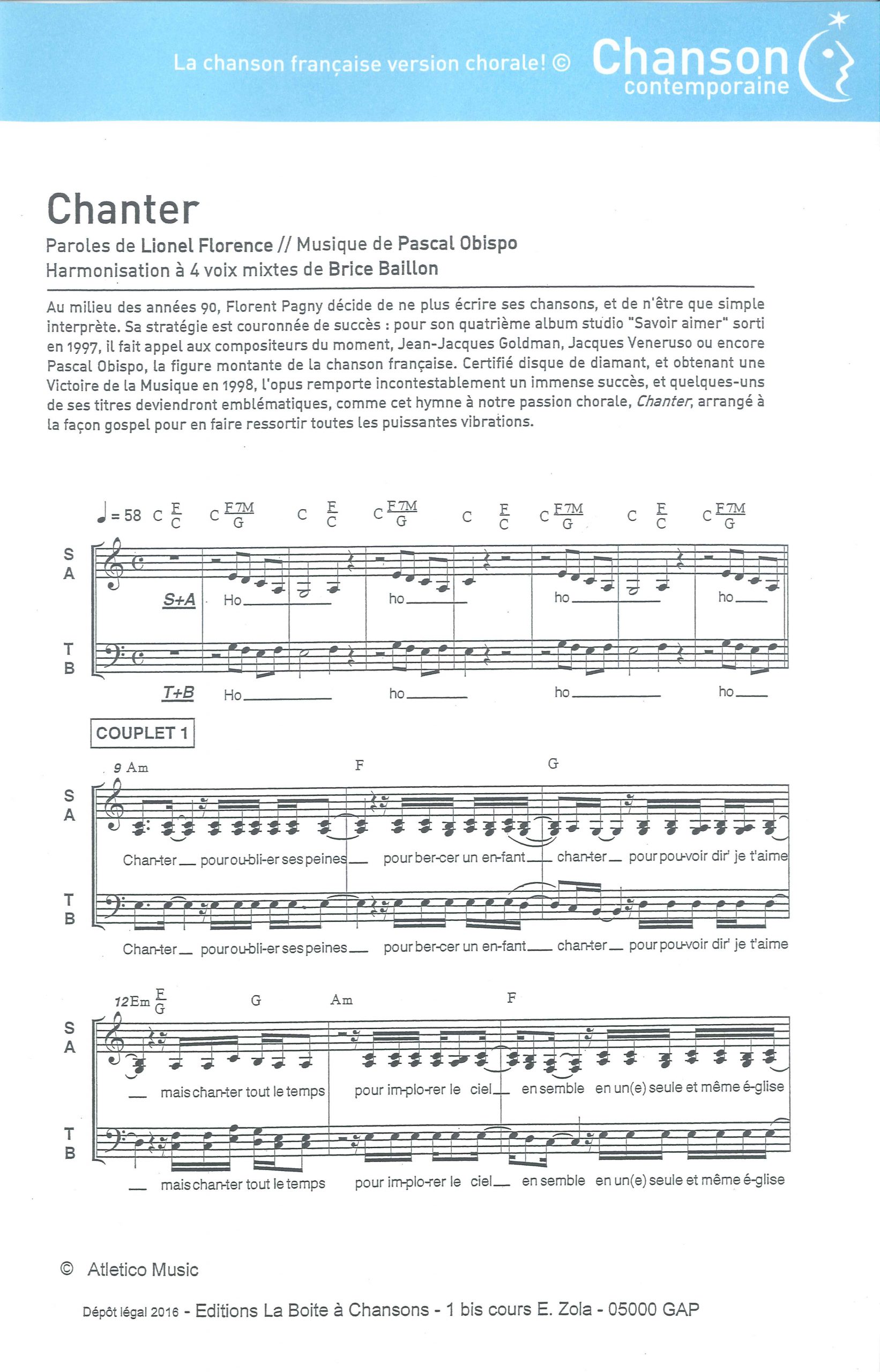 Paroles et musique : Florence / Obispo Harmonisation : Brice BAILLON