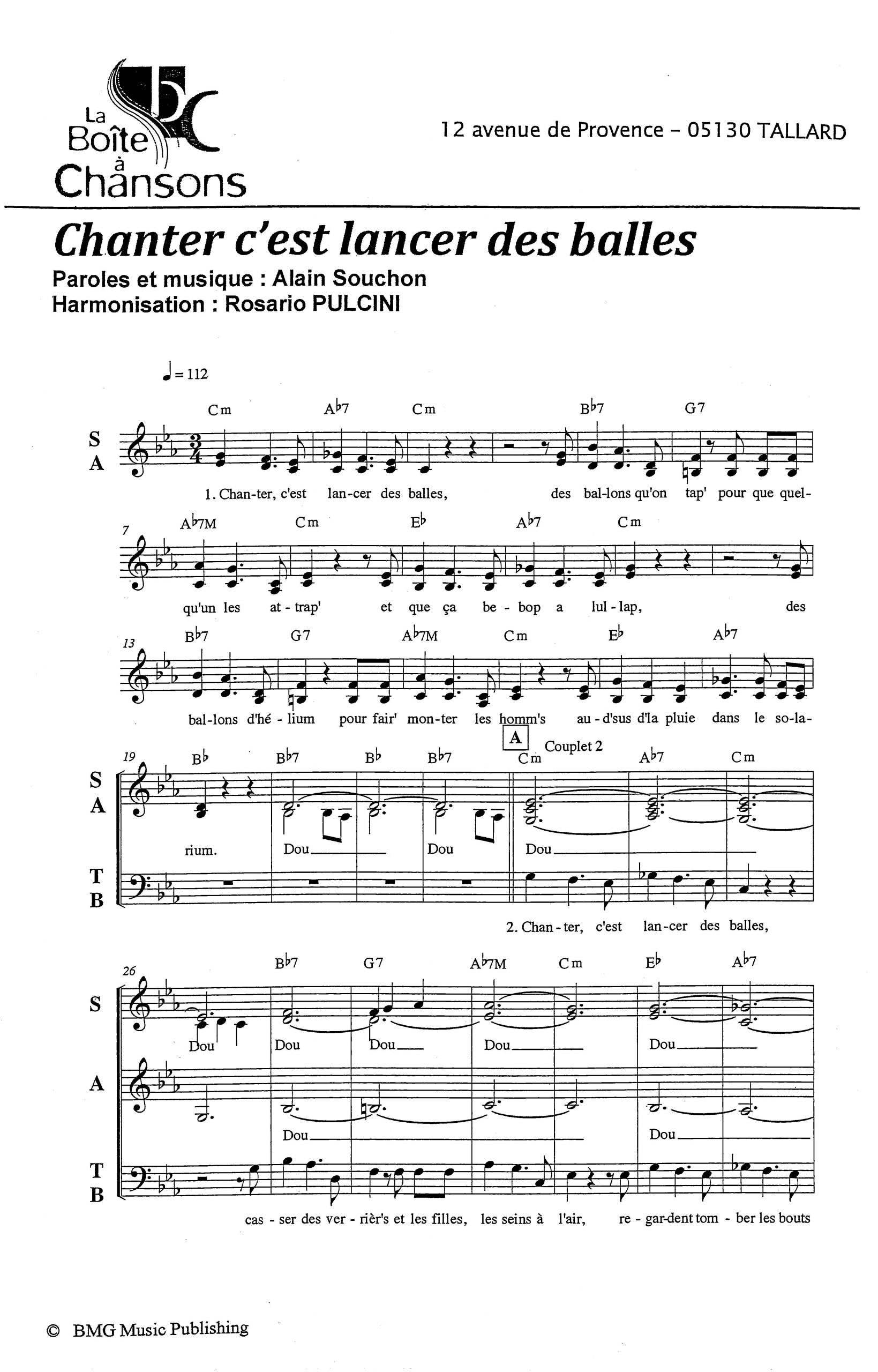 Paroles et musique de SOUCHON Harmonisation : Rosario PULCINI
