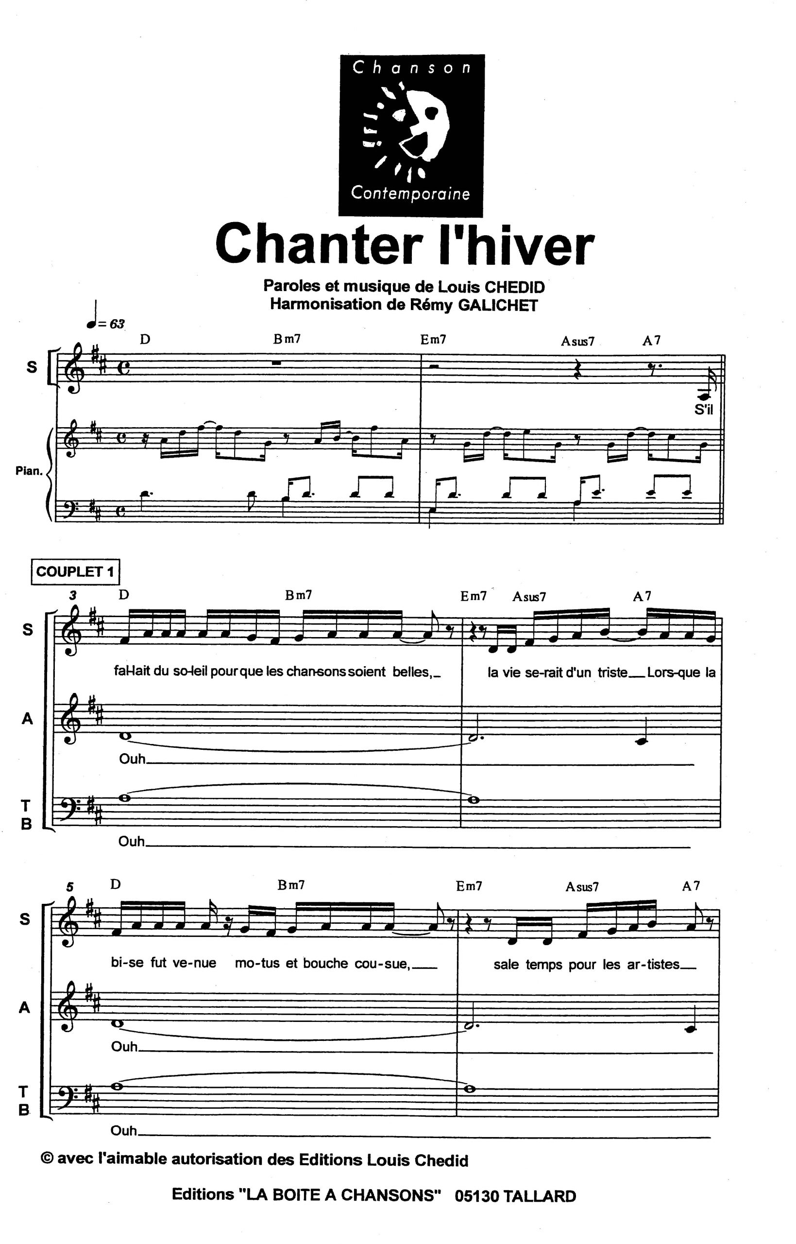 Paroles et musique de CHEDID Harmonisation : Remy GALICHET