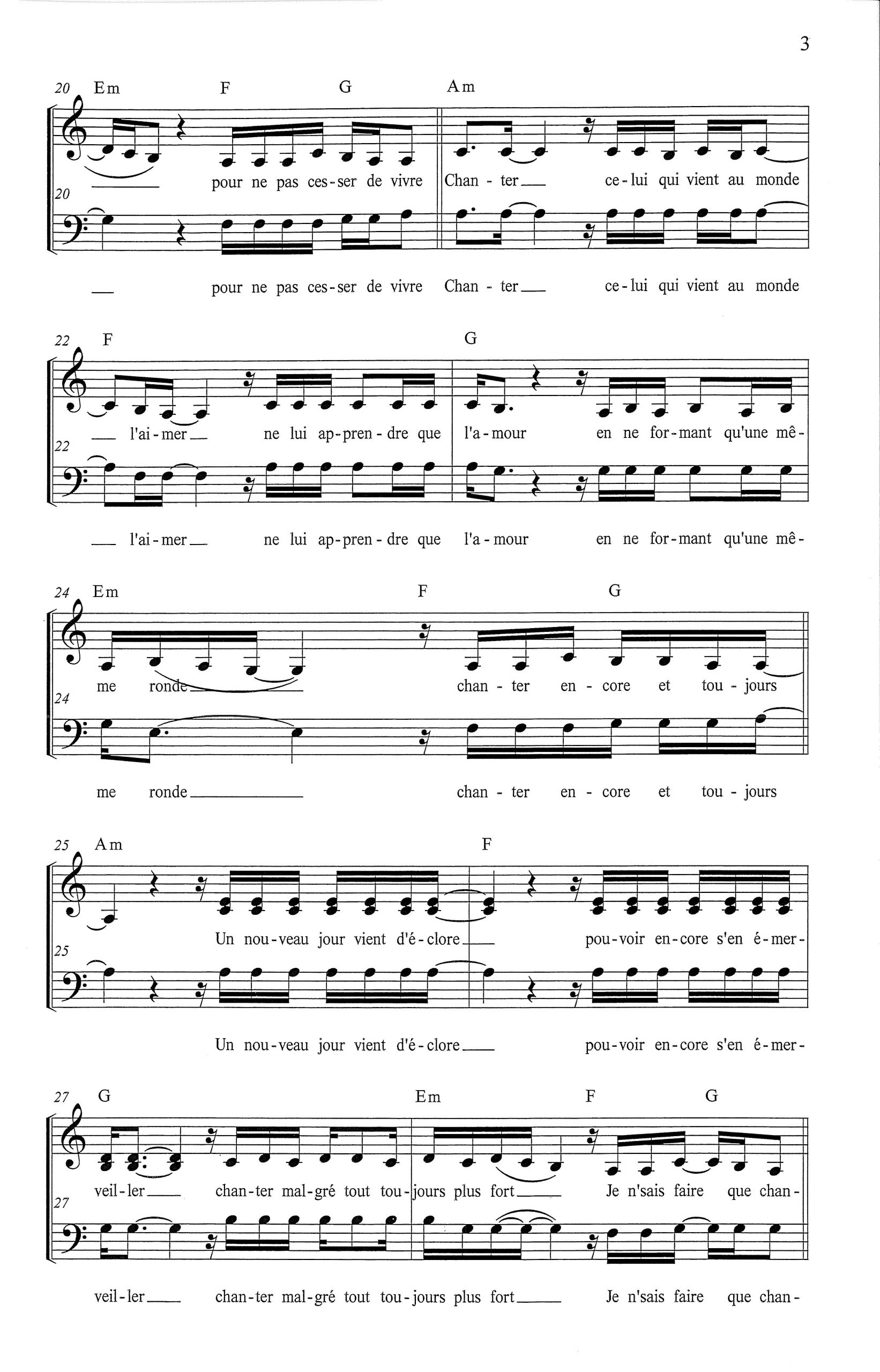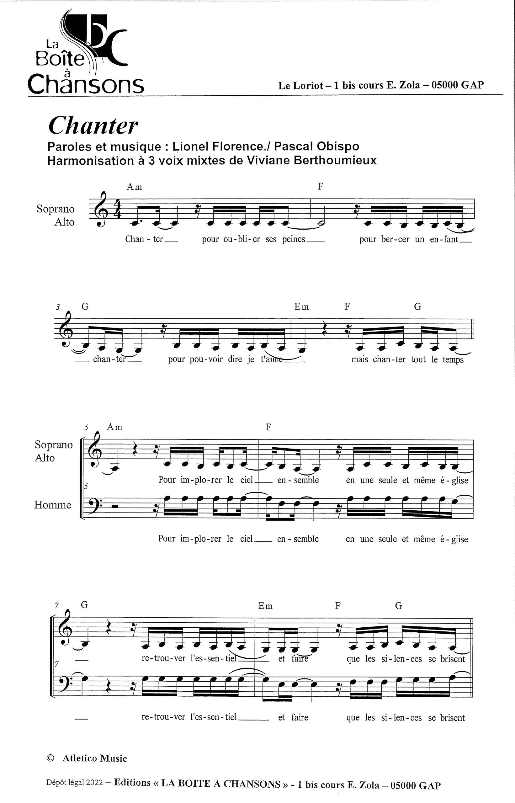 Paroles et musique : L. Florence / P. Obispo Harmonisation : Viviane Berthoumieux