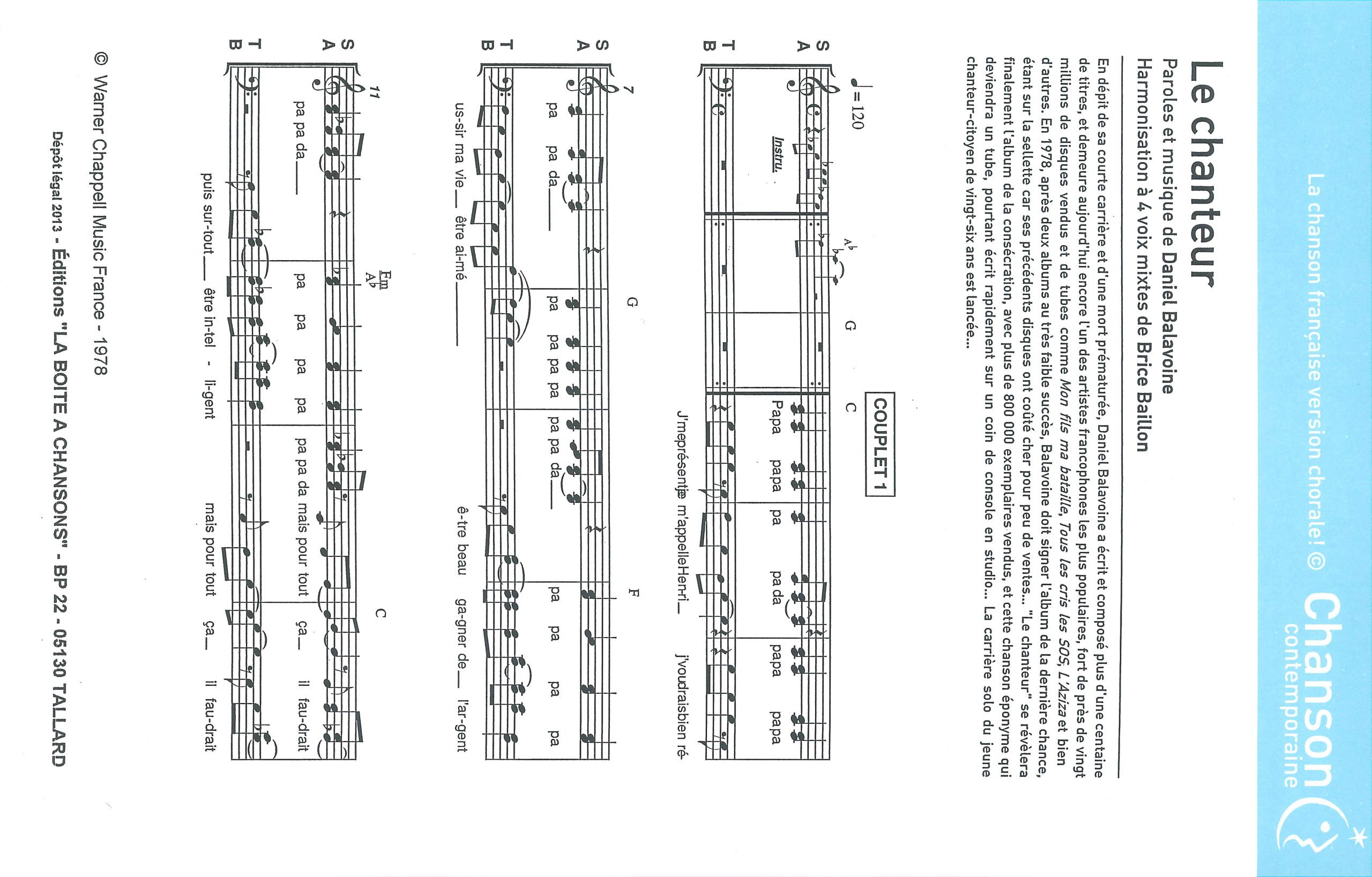 Paroles et musique de BALAVOINE Harmonisation : Brice BAILLON