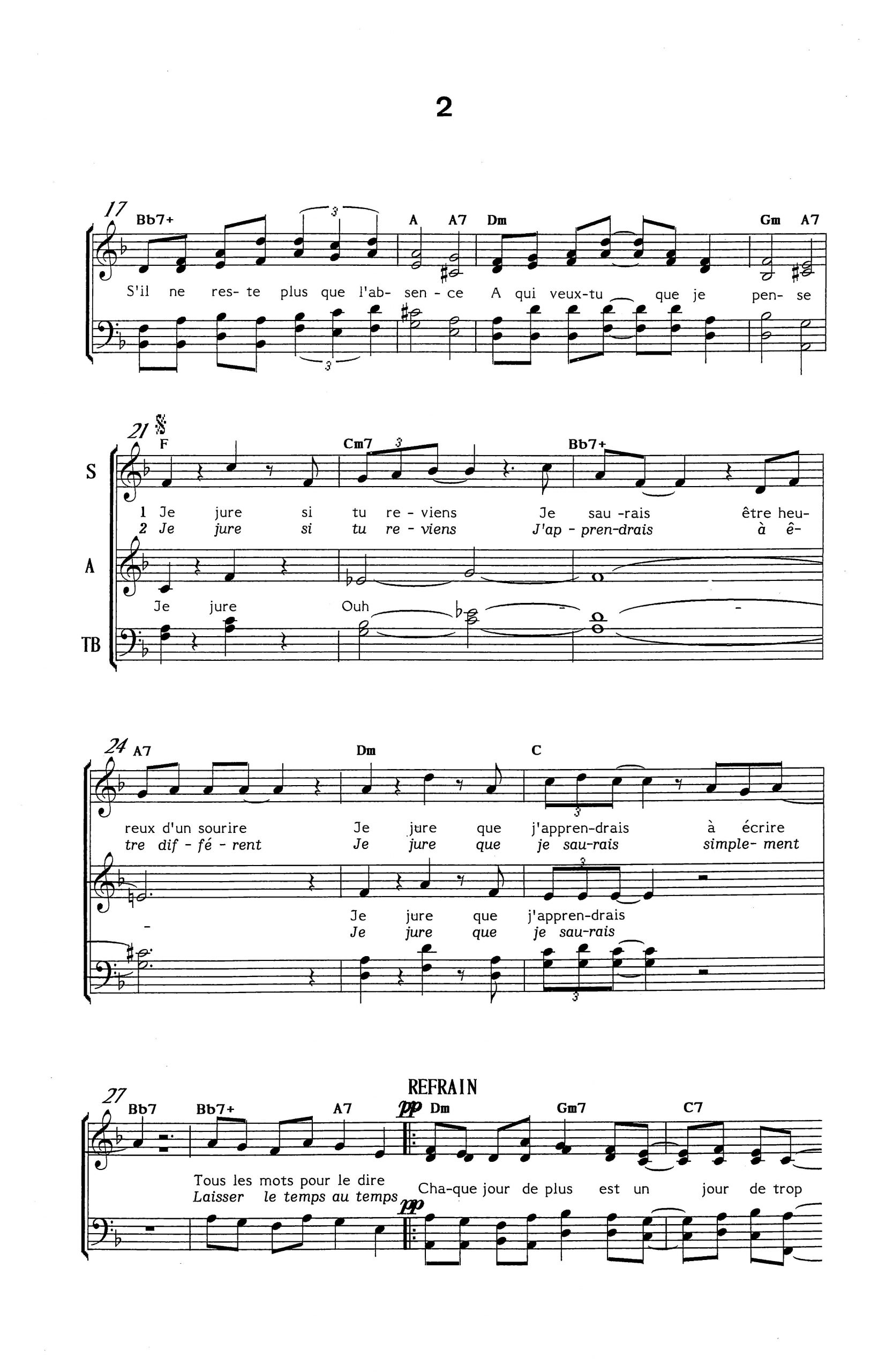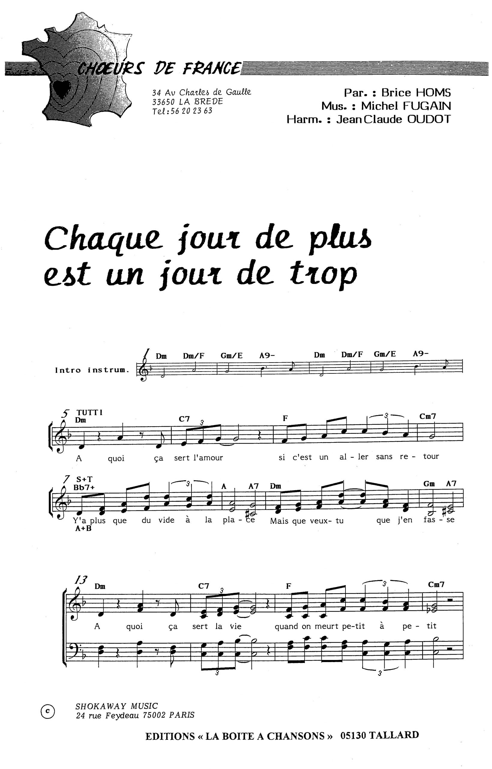 Paroles et musique de HOMS/FUGAIN Harmonisation : Jean Claude OUDOT
