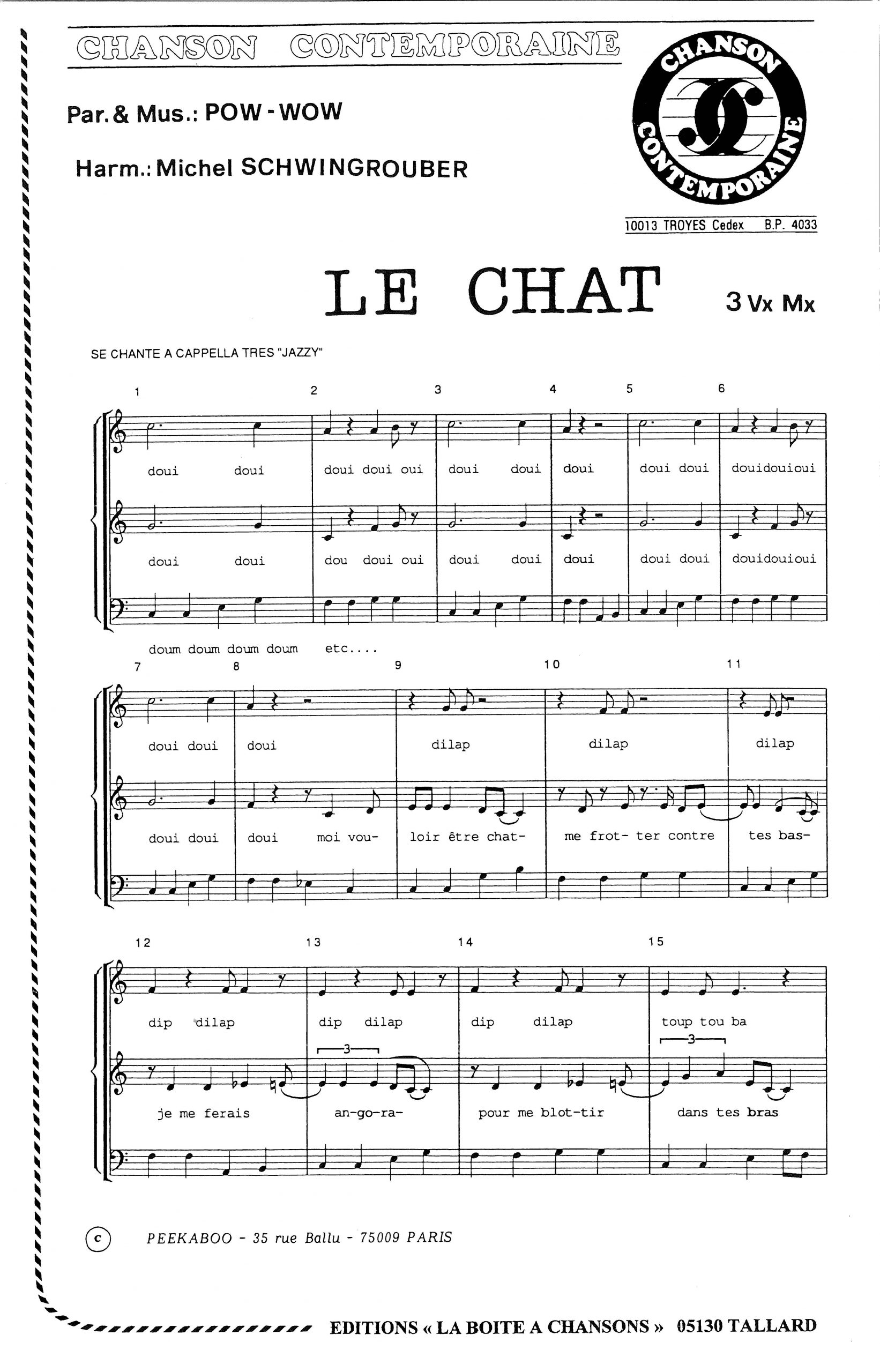 Paroles et musique de POW-WOW Harmonisation : Michel SCHWINGROUBER