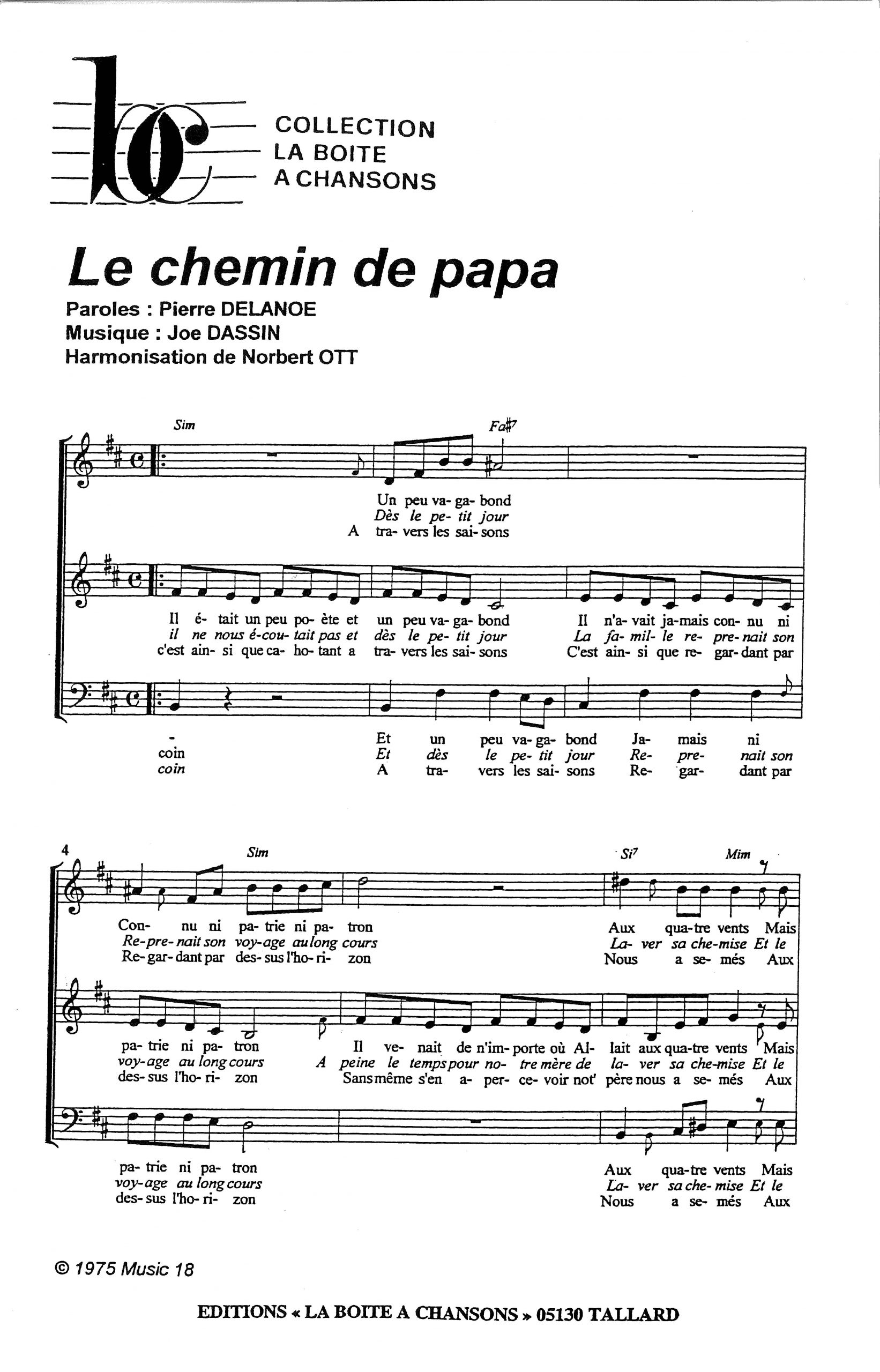 Paroles et musique de DELANOE/DASSIN Harmonisation : Norbert OTT