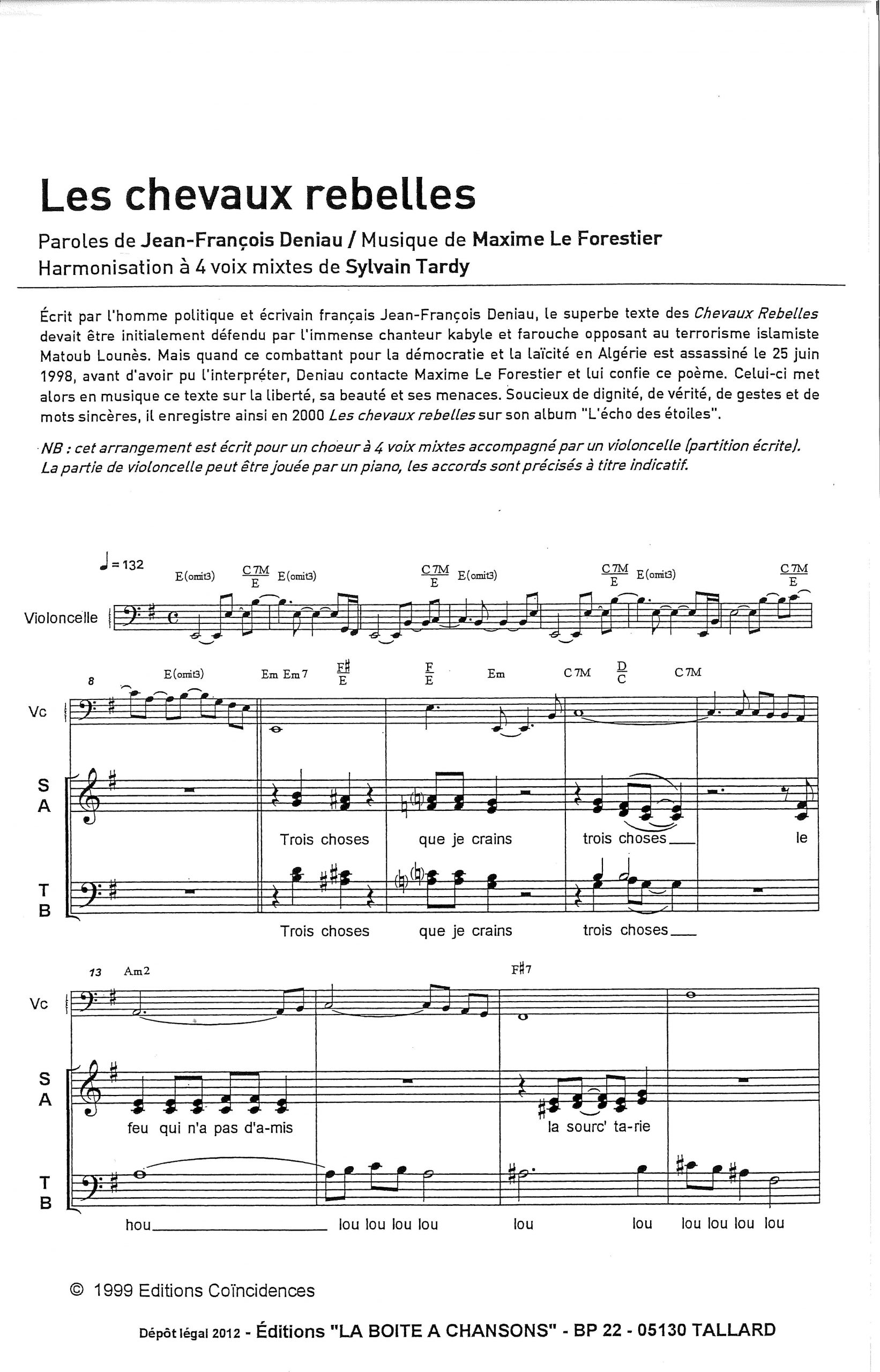 Paroles et musique de LE FORESTIER / DENIAU Harmonisation : Sylvain TARDY