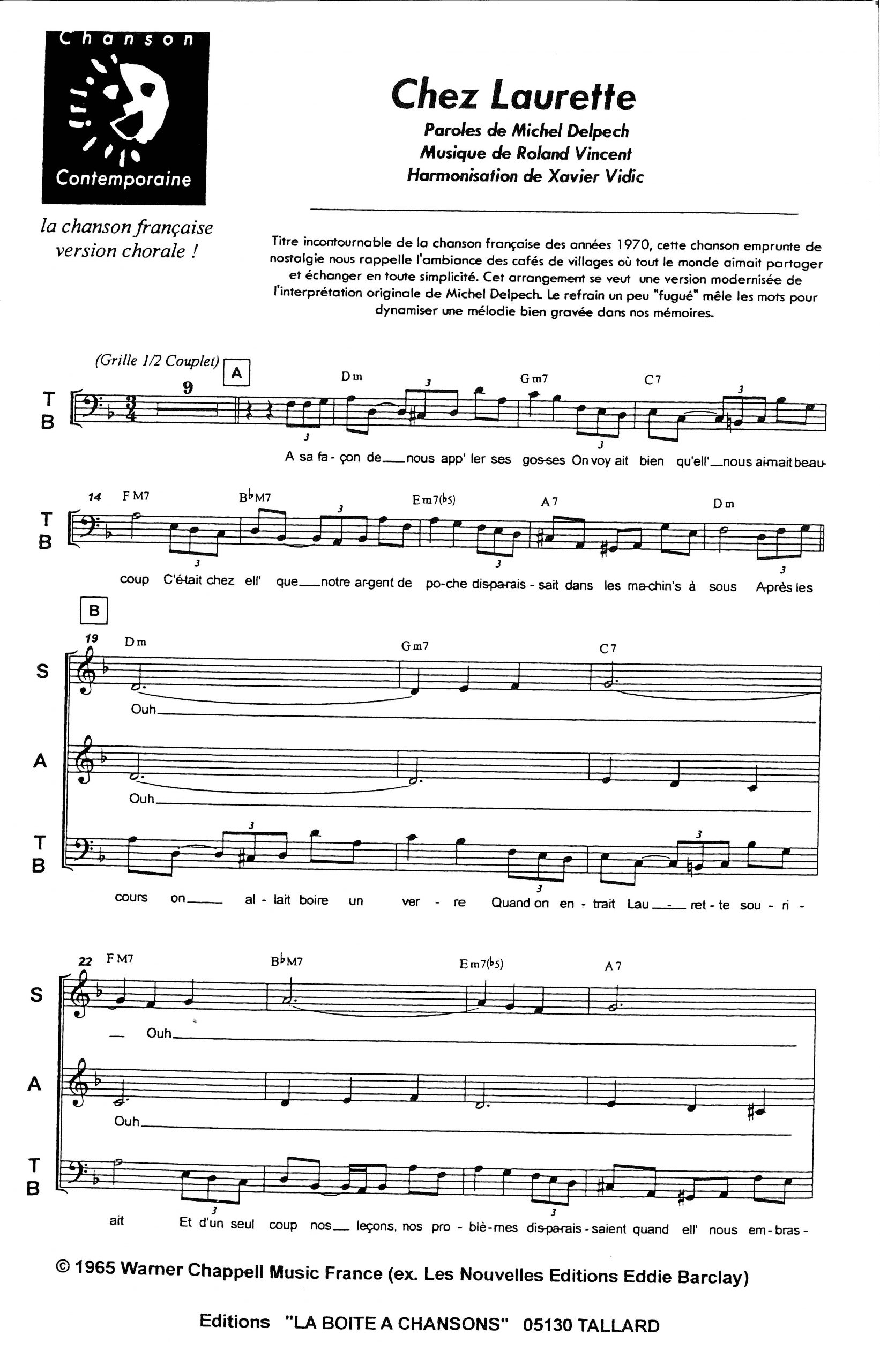 Paroles et musique de DELPECH/VINCENT Harmonisation : Xavier VIDIC