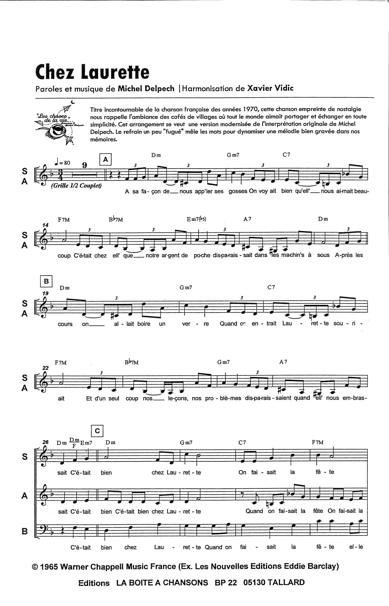 Paroles et musique de DELPECH/VINCENT Harmonisation : Xavier VIDIC
