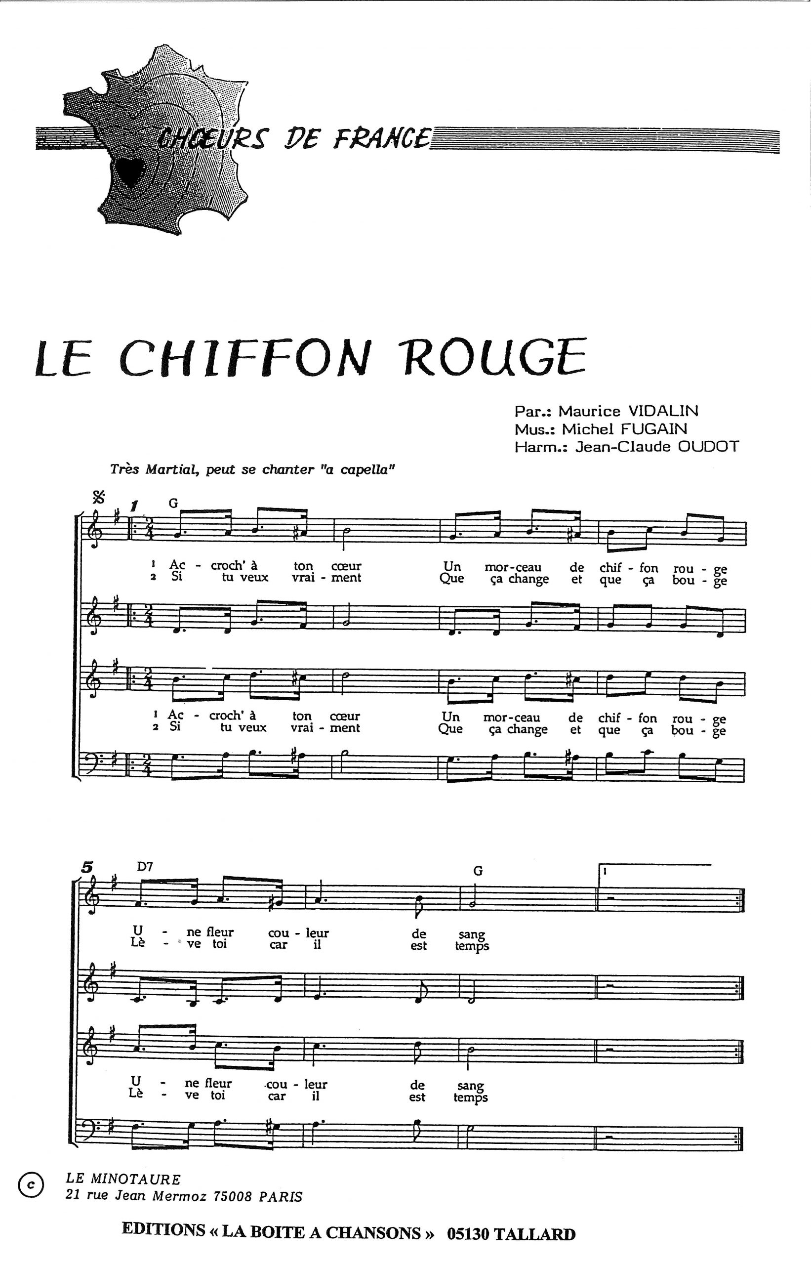Paroles et musique de VIDALIN/FUGAIN Harmonisation : Jean Claude OUDOT