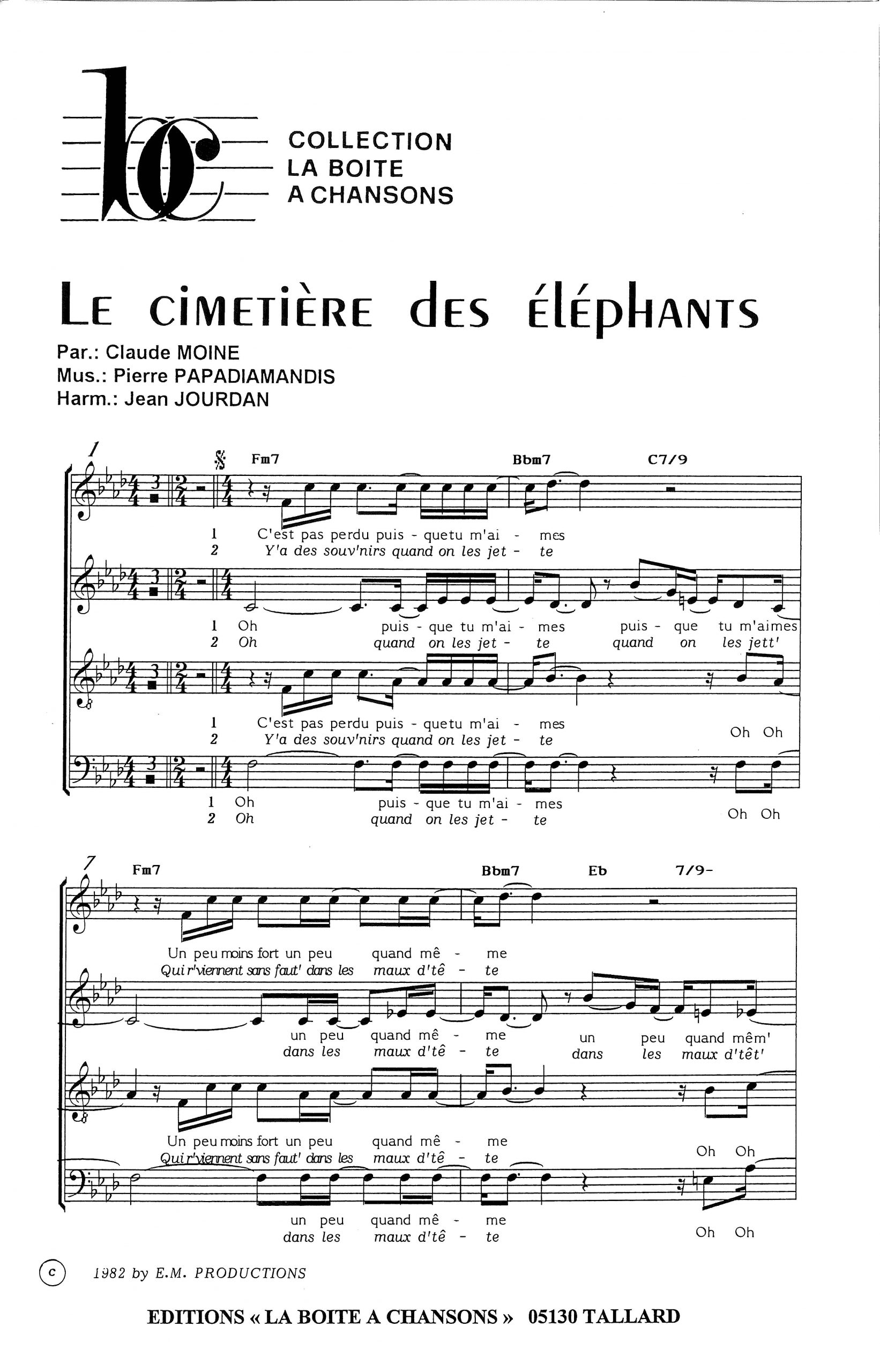 Paroles et musique de MOINE/PAPADIAMANDIS Harmonisation : Jean JOURDAN