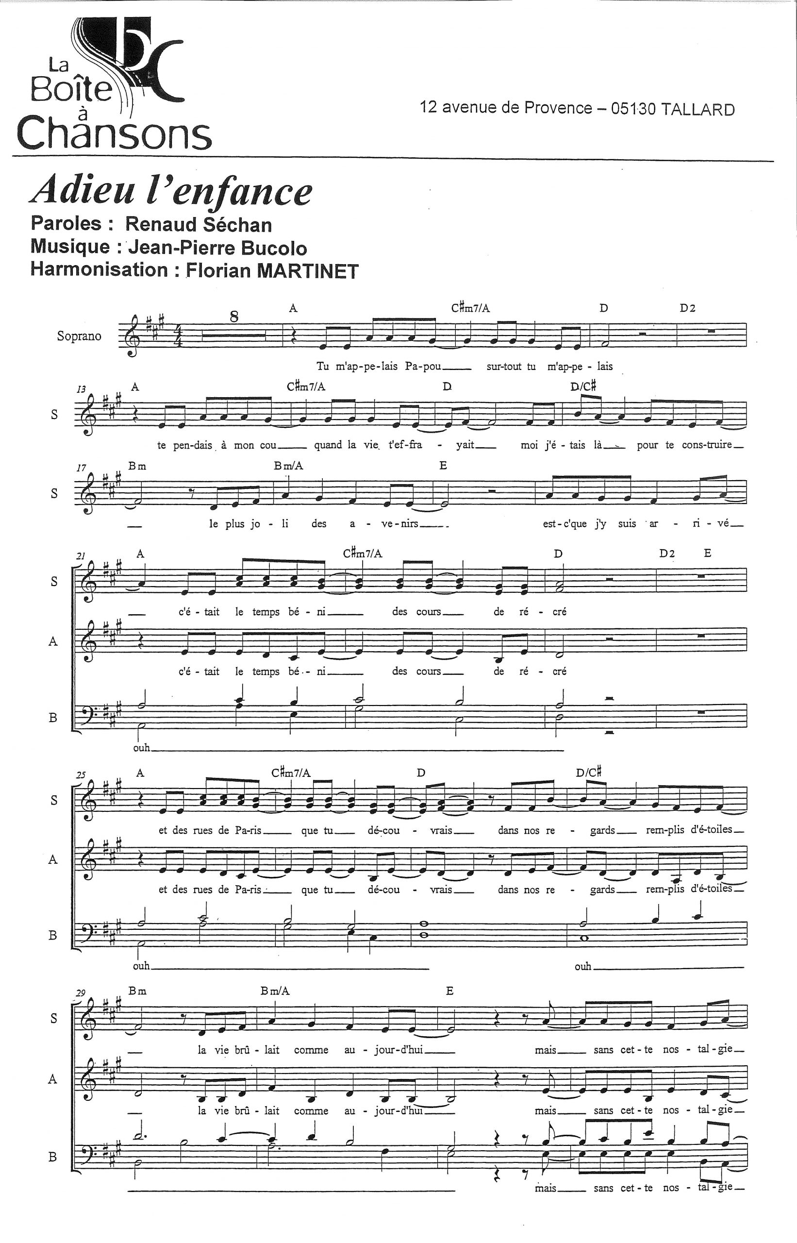 Paroles et musique : Renaud Harmonisation : Andrée BREAULT