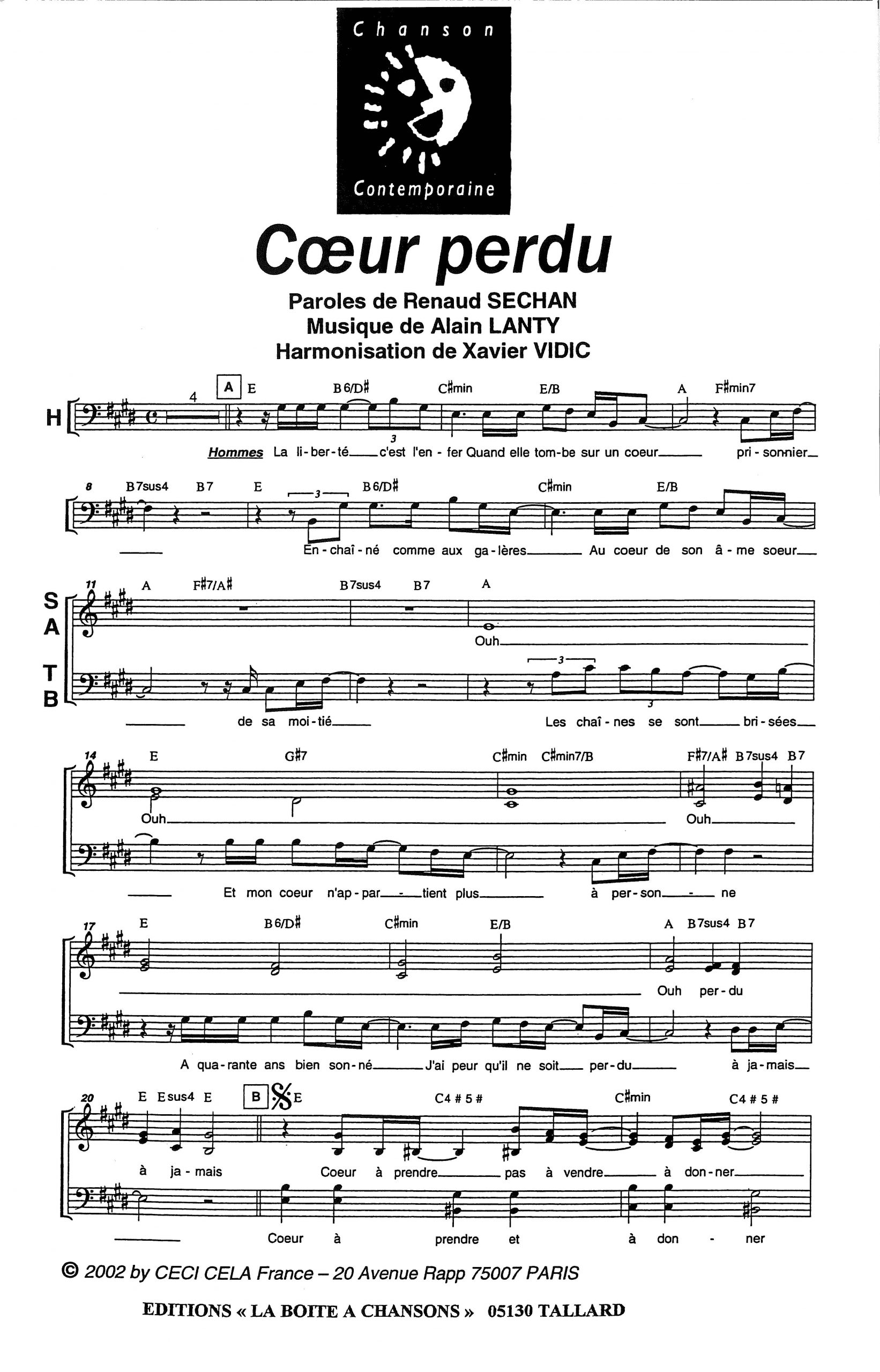Paroles et musique de SECHAN/LANTY Harmonisation : Xavier VIDIC