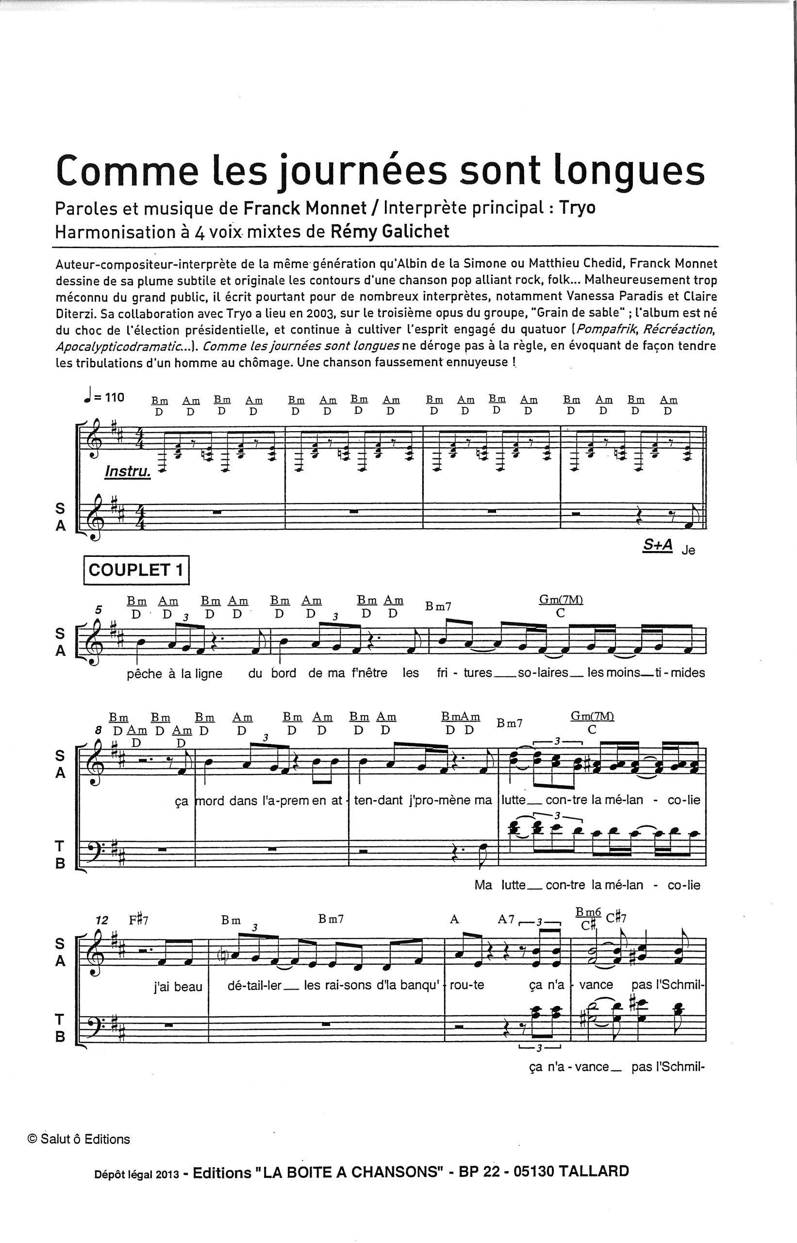 Paroles et musique de MONNET Harmonisation : Rémy GALICHET