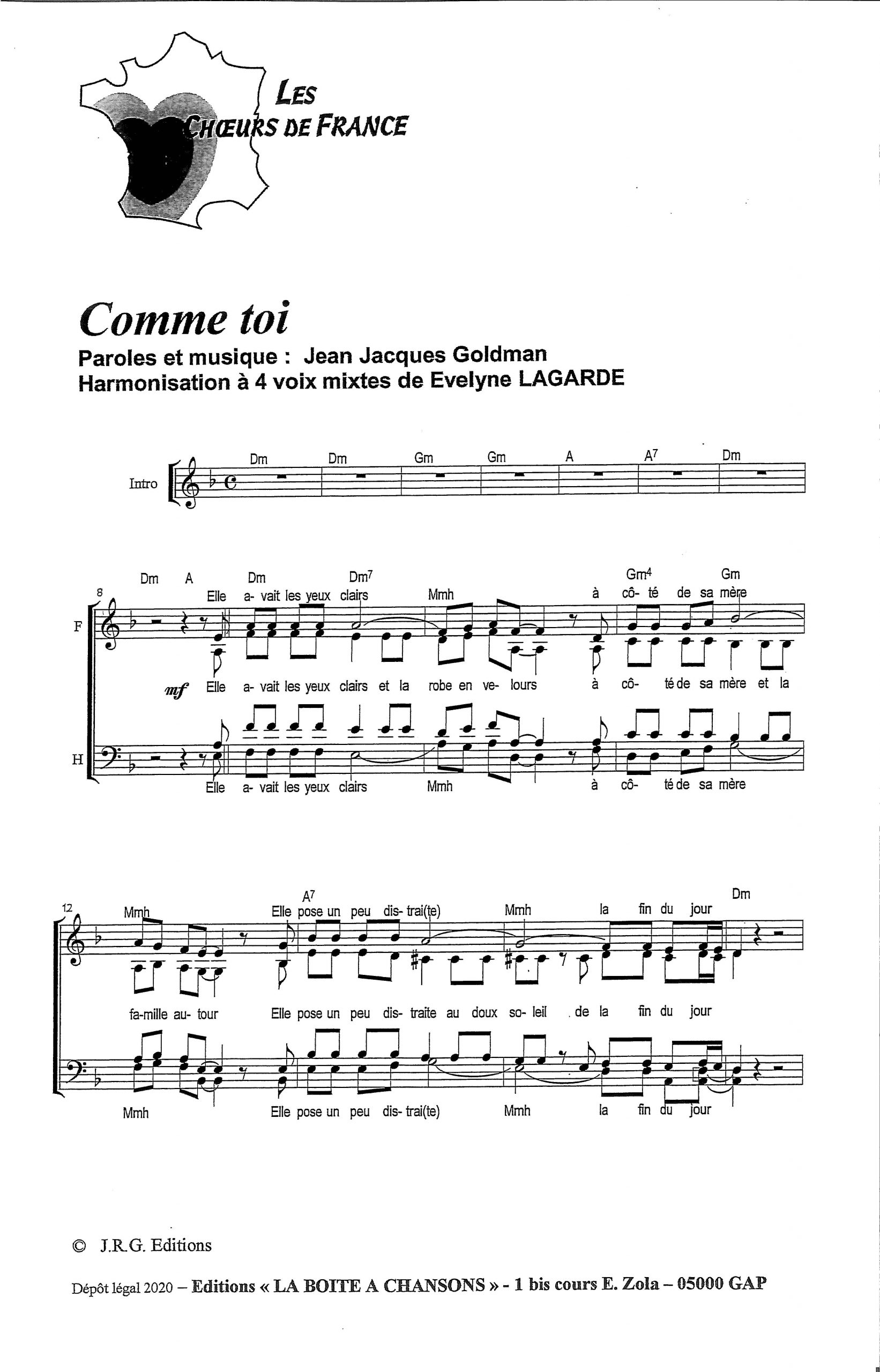 Paroles et musique : J.J. Goldman Harmonisation : Evelyne Lagarde
