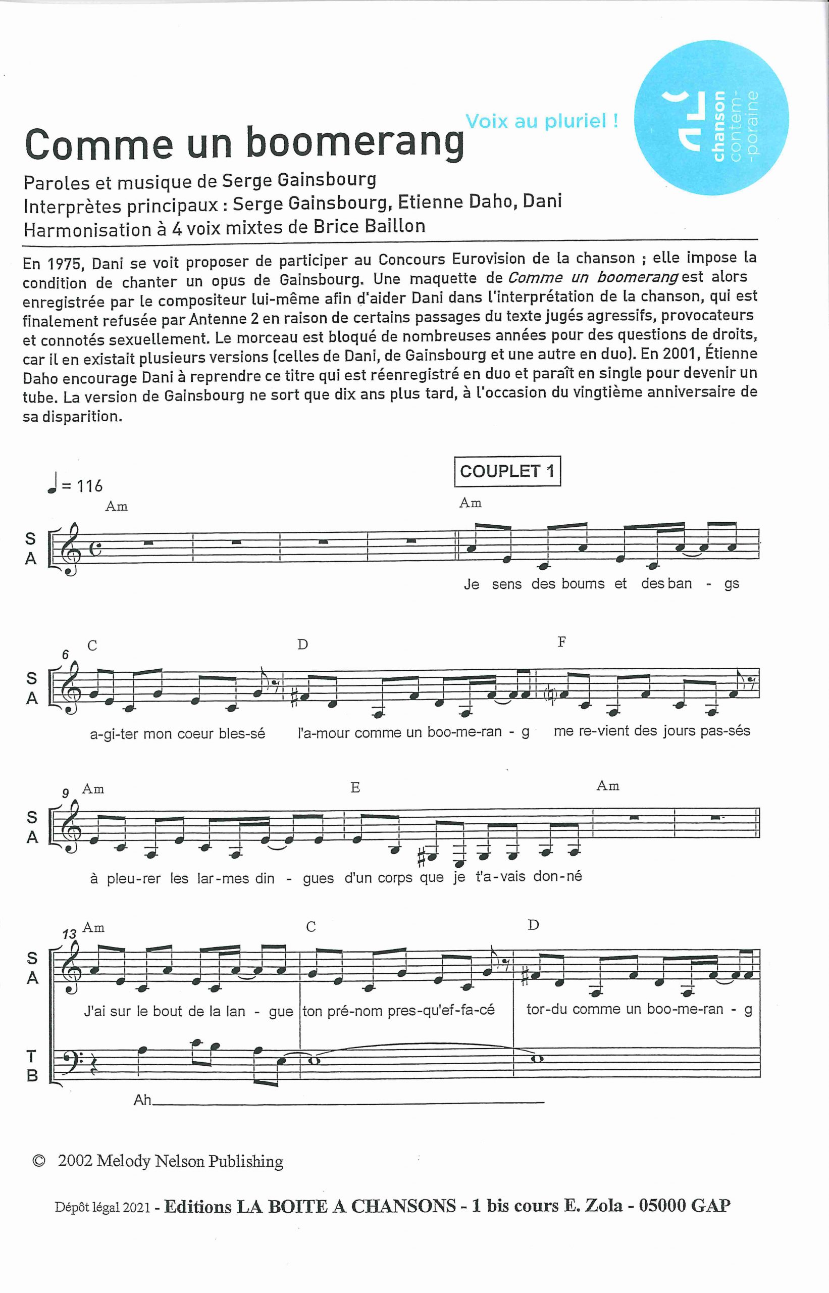 Paroles et musique : S. Gainsbourg Harmonisation : Brice Baillon