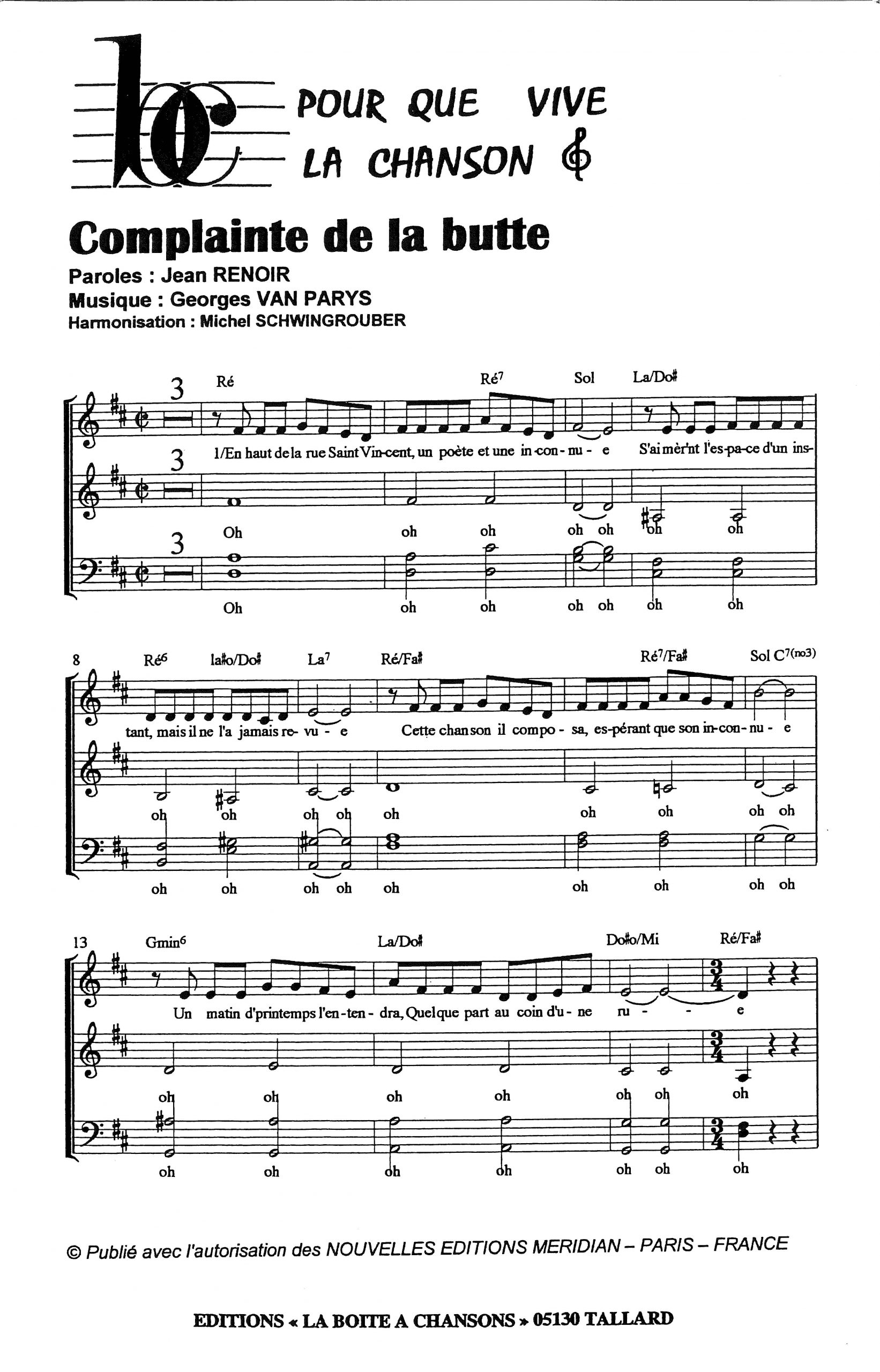 Paroles et musique de RENOIR/VAN PARYS Harmonisation : Michel SCHWINGROUBER