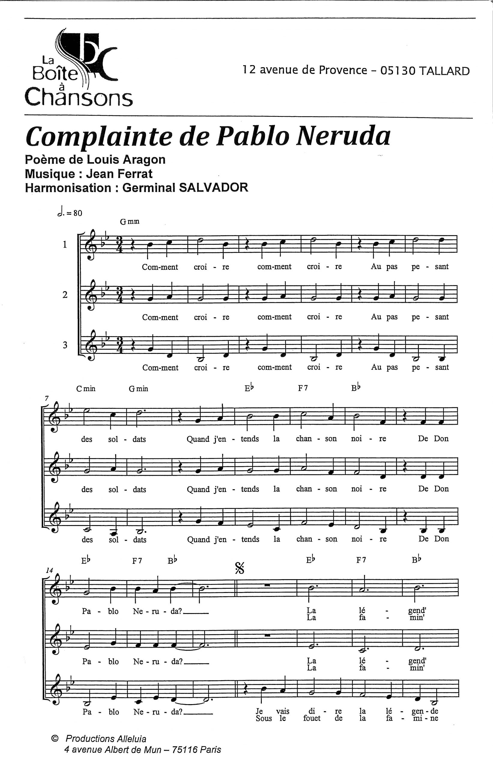 Paroles et musique de ARAGON/FERRAT Harmonisation : Germinal SALVADOR