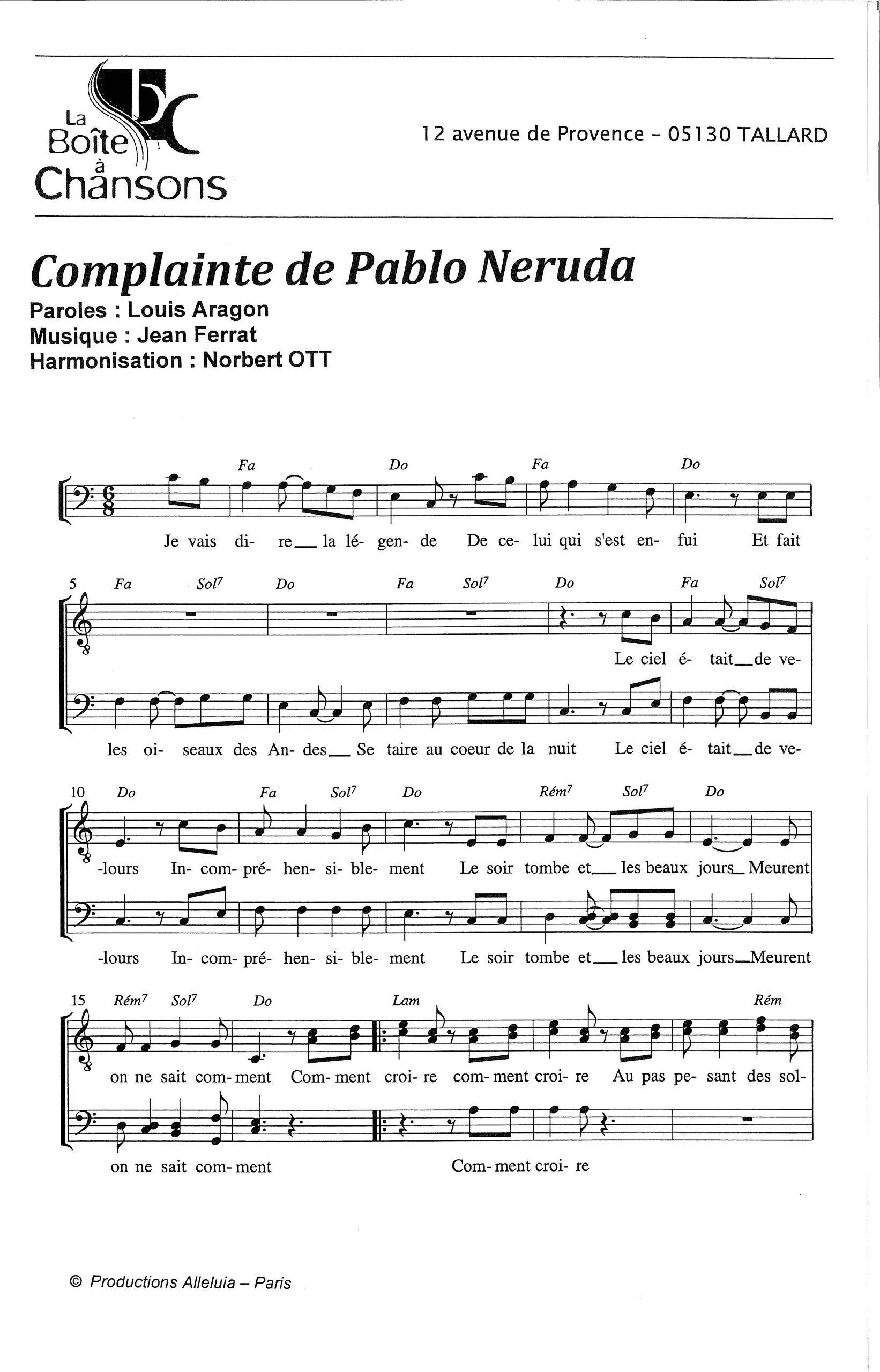 Paroles et musique de ARAGON/FERRAT Harmonisation : Norbert OTT