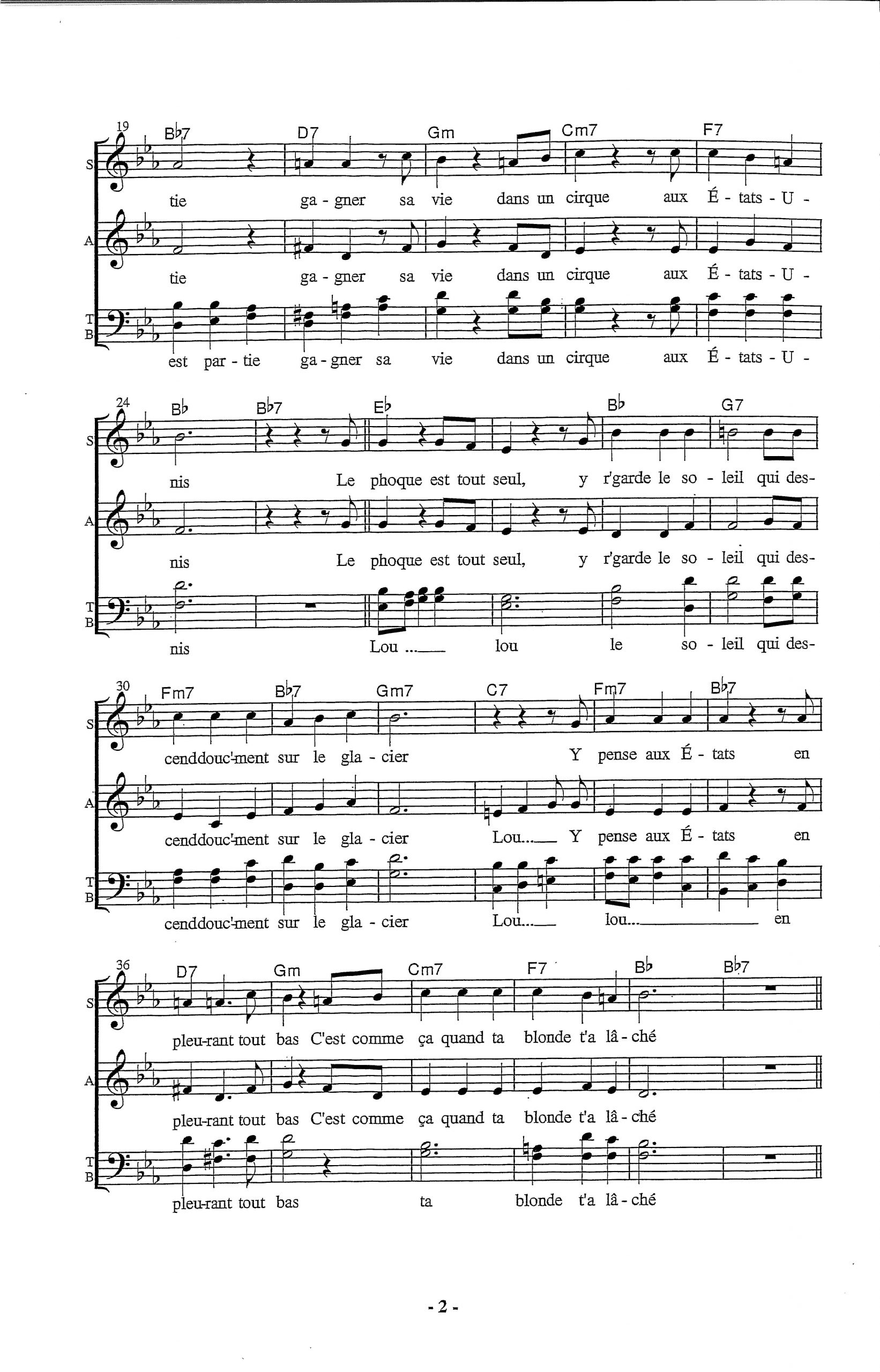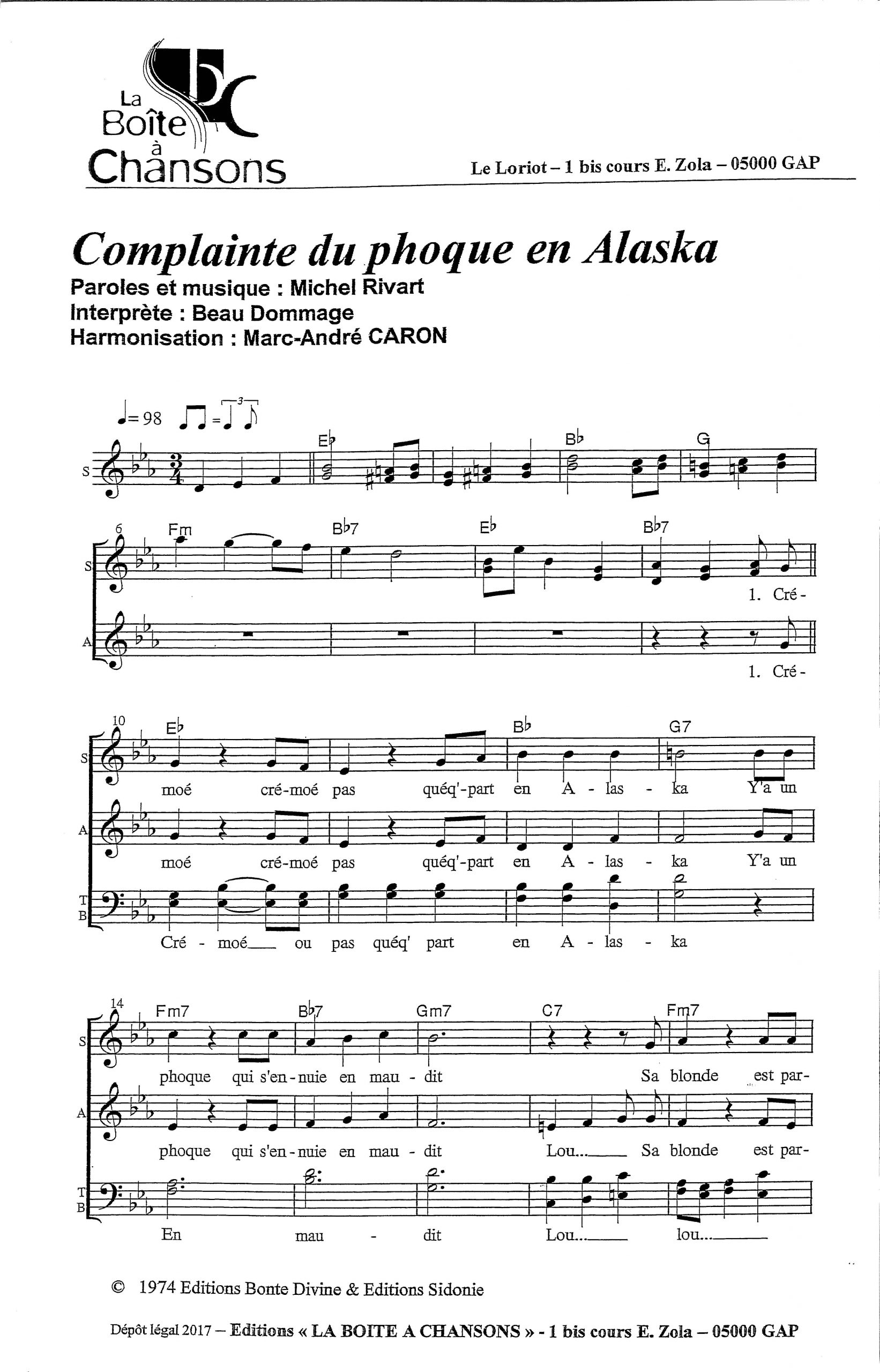 Paroles et musique : M. Rivard / Beau Dommage Harmonisation : Marc André CARON