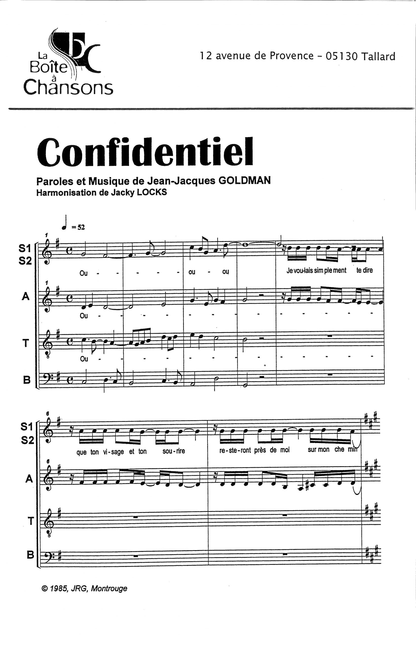 Paroles et musique de GOLDMAN Harmonisation : Jacky LOCKS