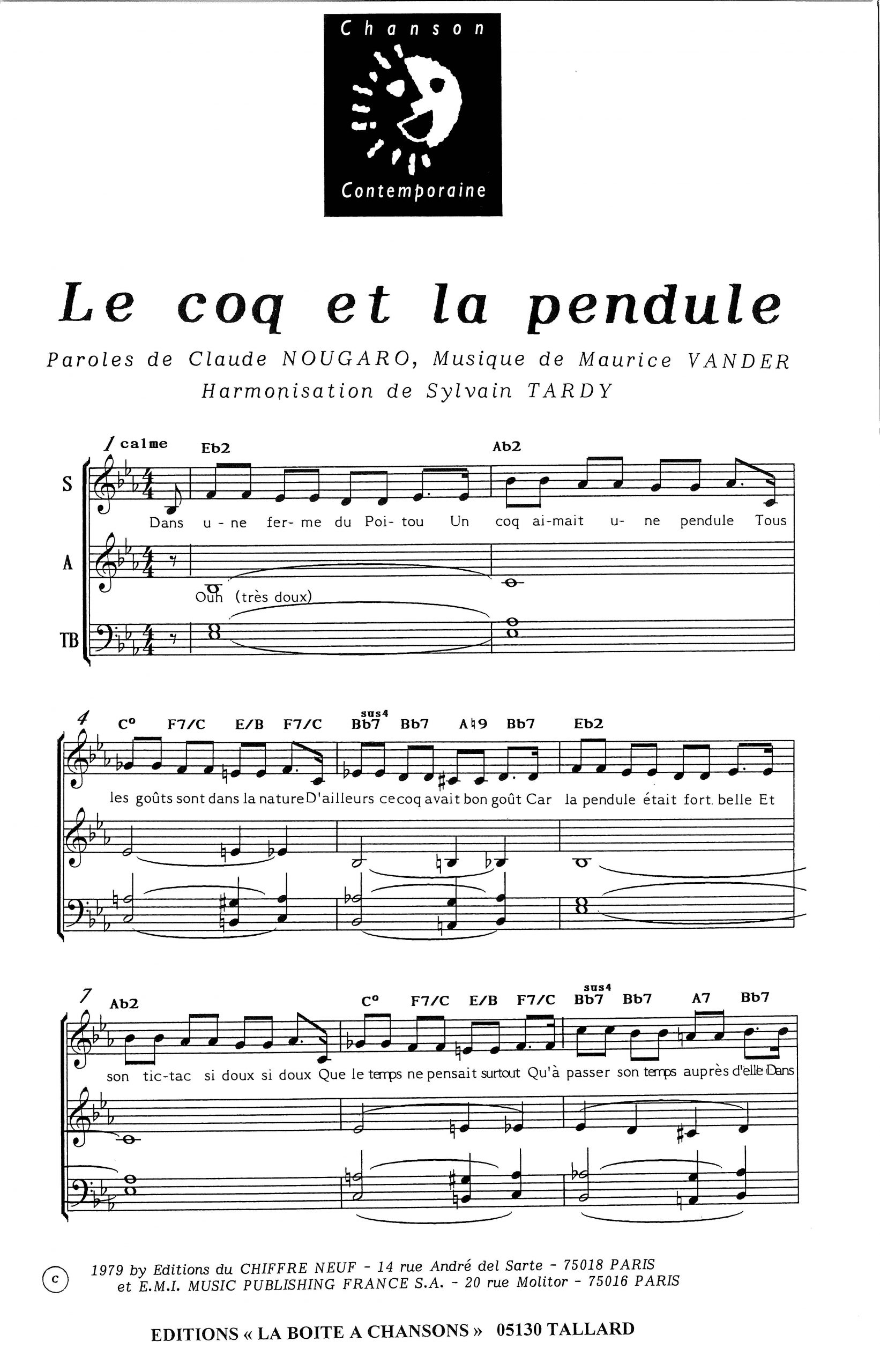 Paroles et musique de NOUGARO/VANDERSCHUEREN Harmonisation : Sylvain TARDY