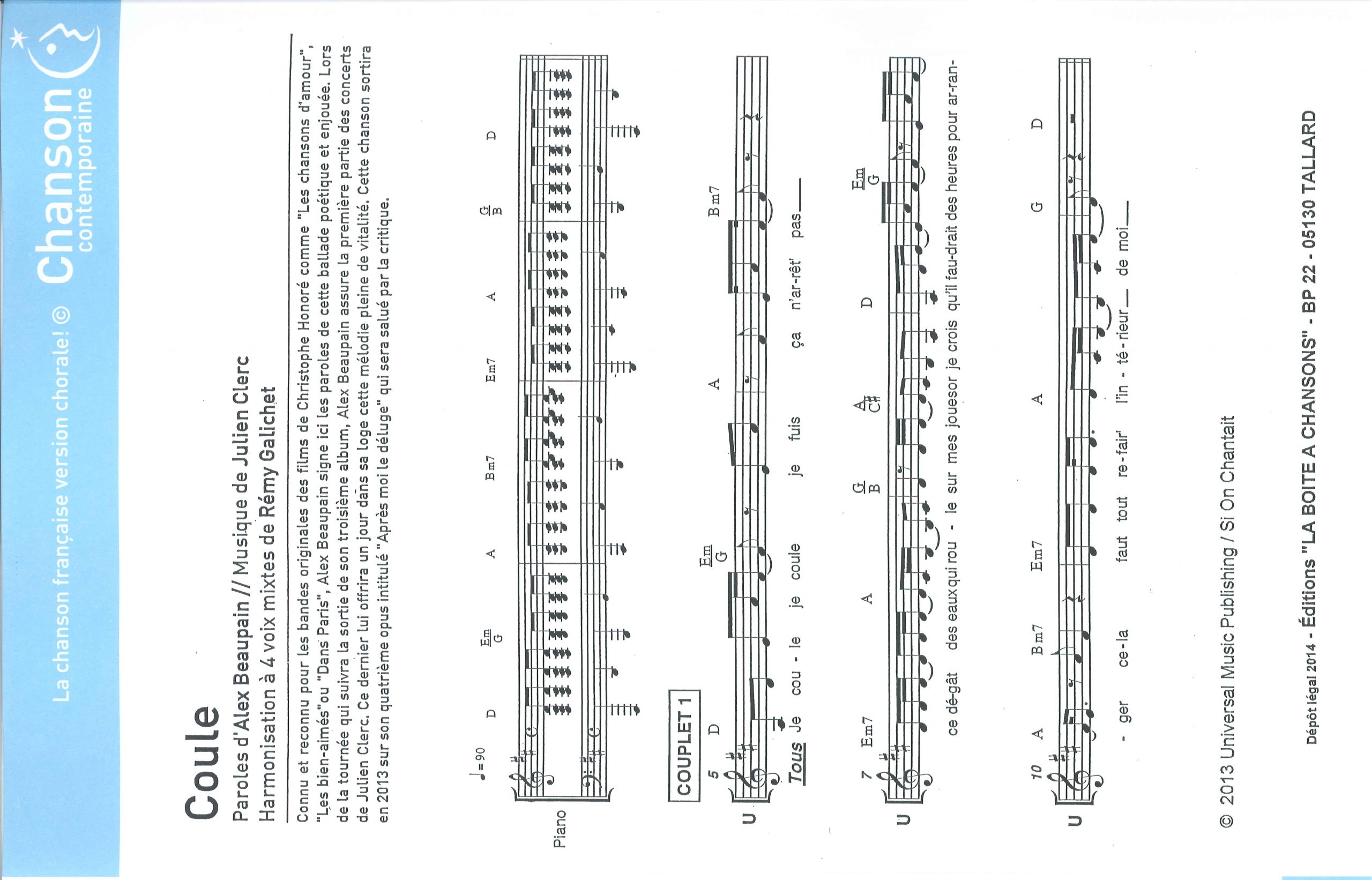 Paroles et musique de BEAUPAIN/CLERC Harmonisation : Rémy GALICHET