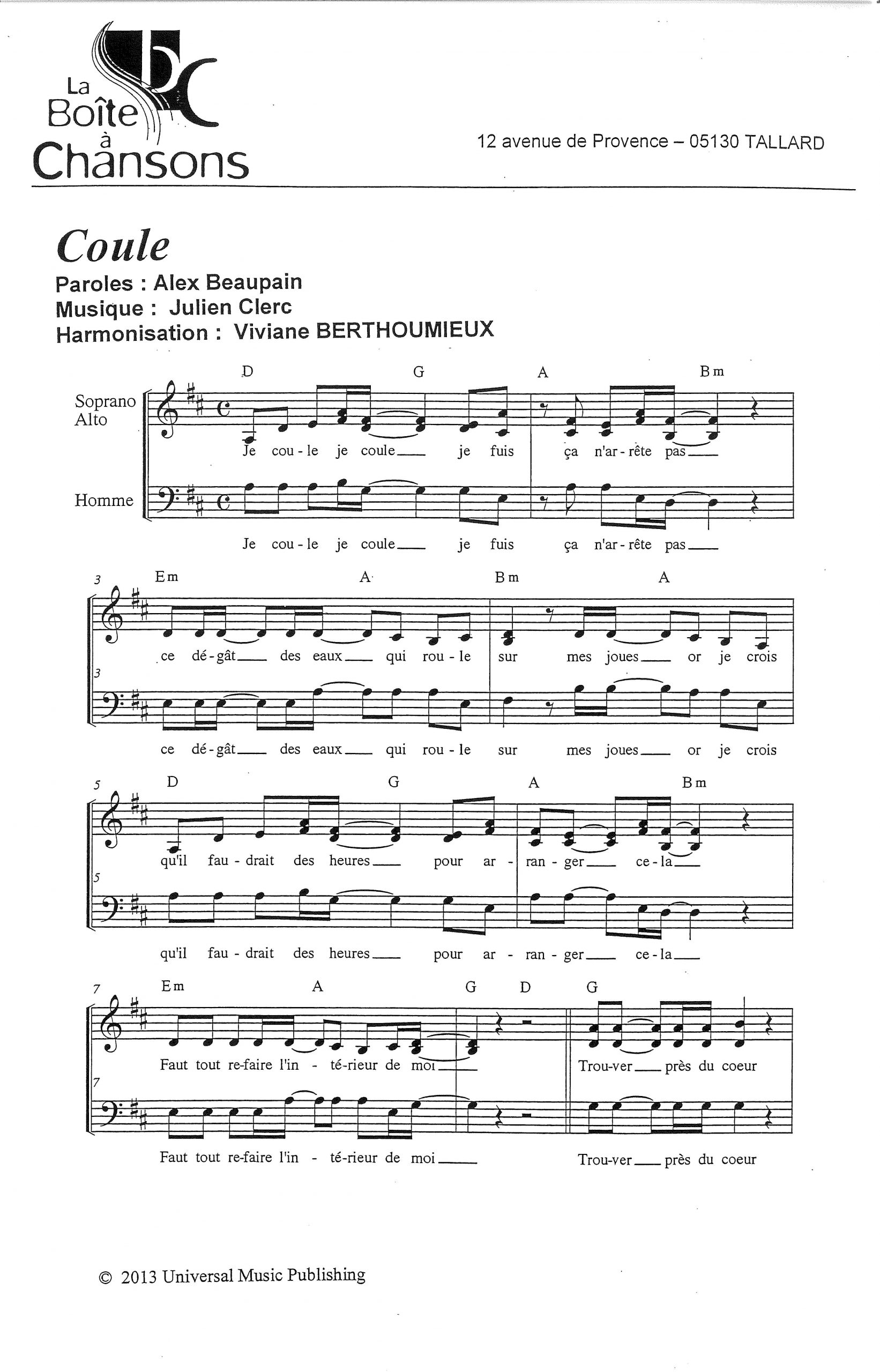 Paroles et musique : A. Beaupain / J. Clerc Harmonisation : Viviane BERTHOUMIEUX