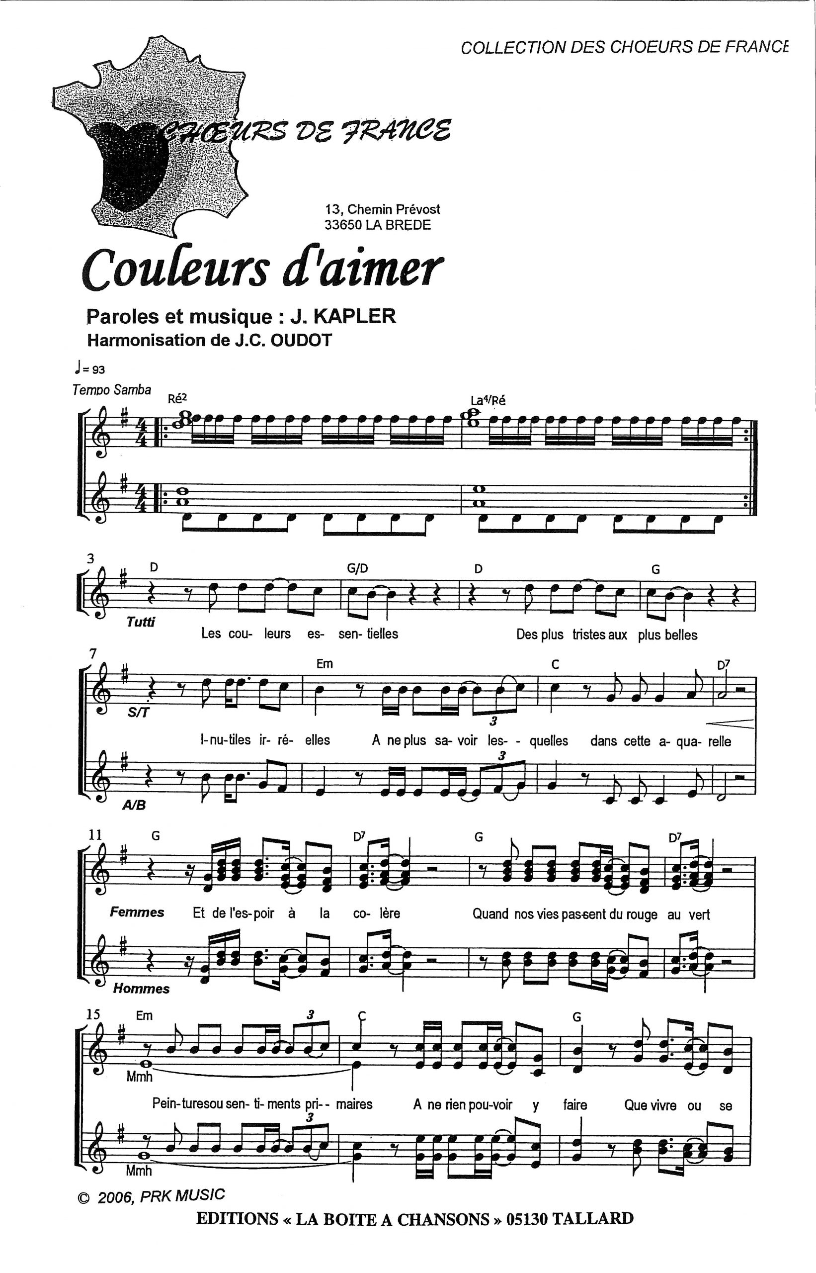 Paroles et musique de KAPLER Harmonisation : Jean Claude OUDOT