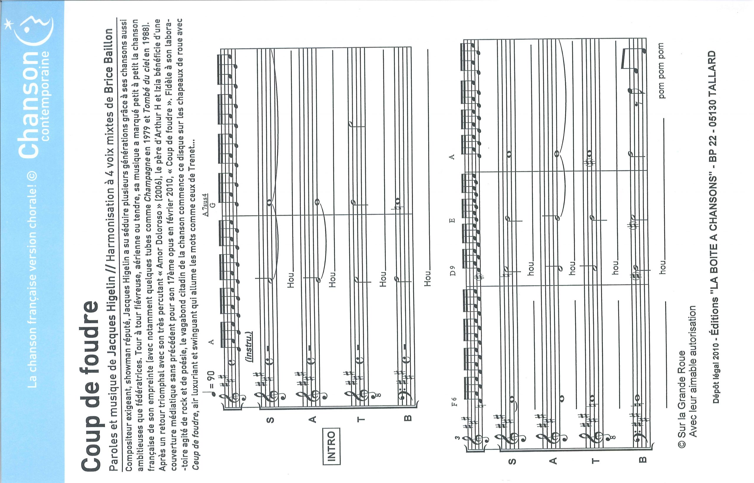 Paroles et musique de HIGELIN Harmonisation : Brice BAILLON