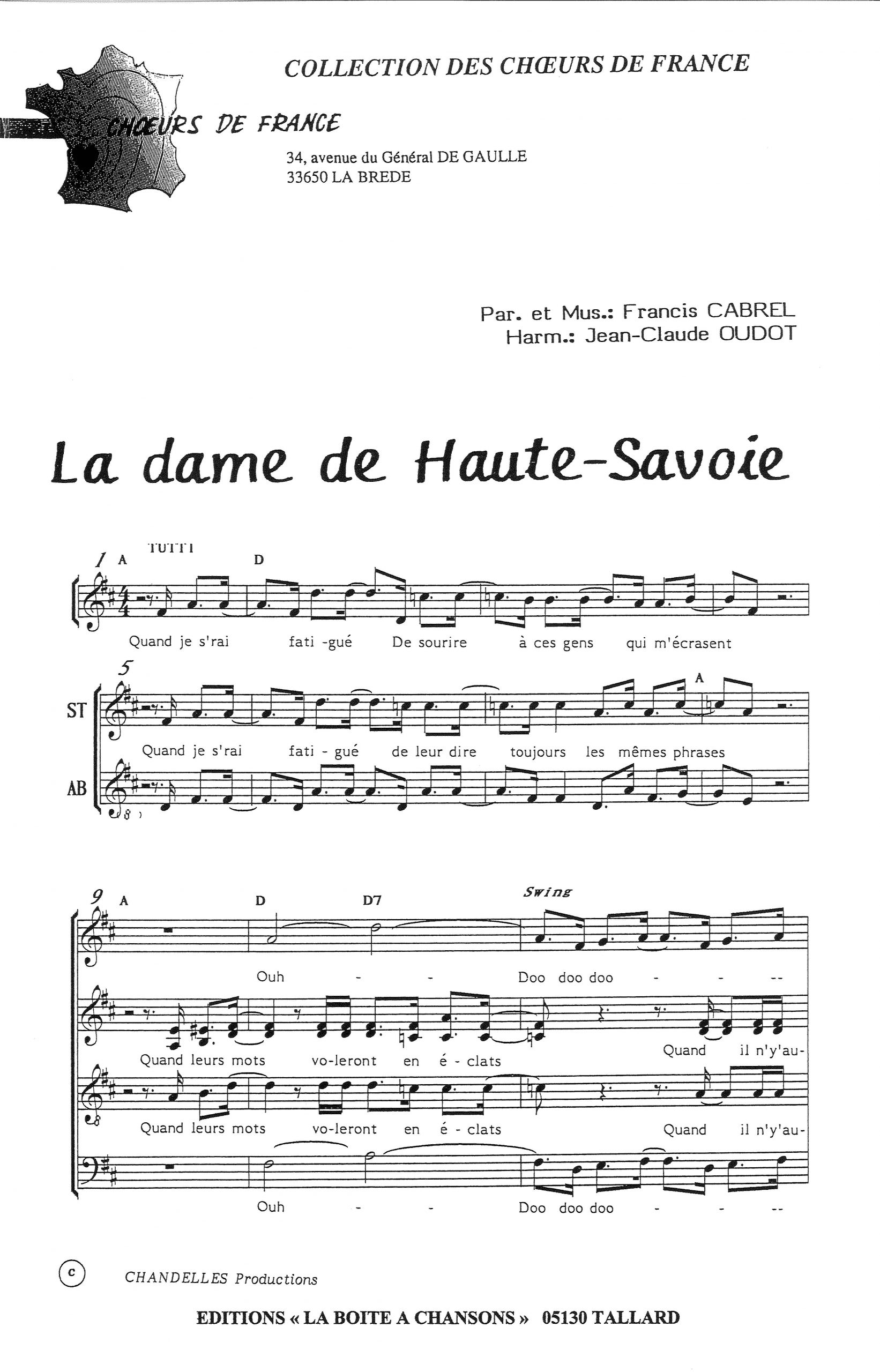 Paroles et musique de CABREL Harmonisation : Jean Claude OUDOT