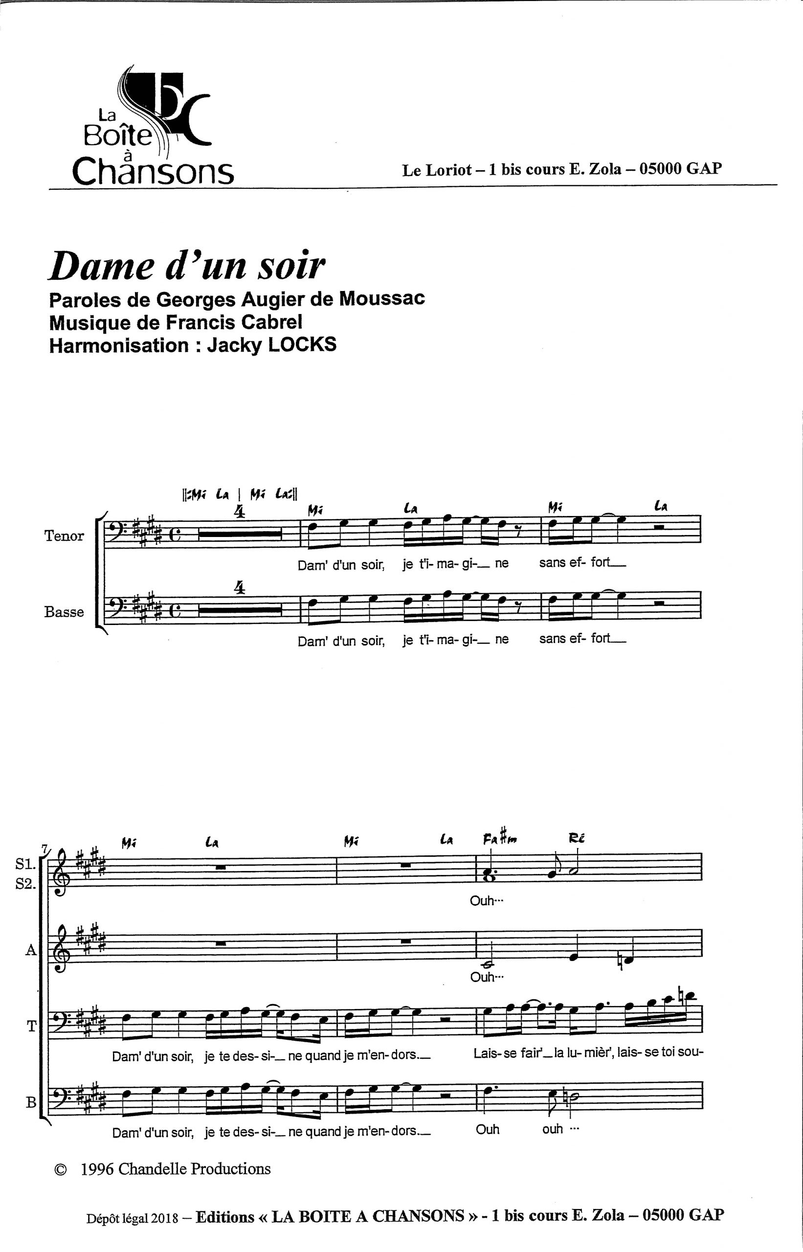 Paroles et musique : G. Augier de Moussac / F. Cabrel Harmonisation : Jacky LOCKS