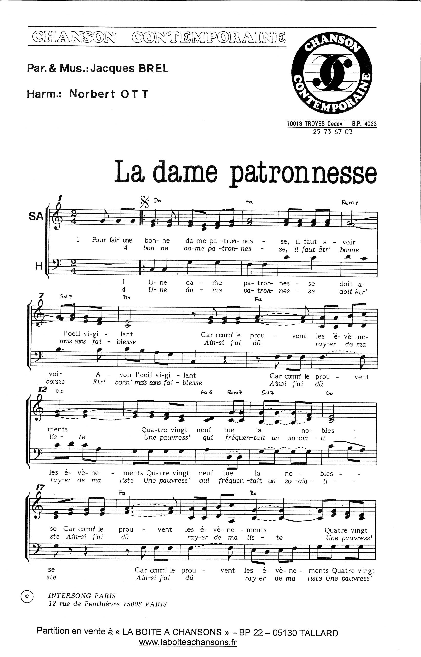 Paroles et musique de BREL Harmonisation : Norbert OTT