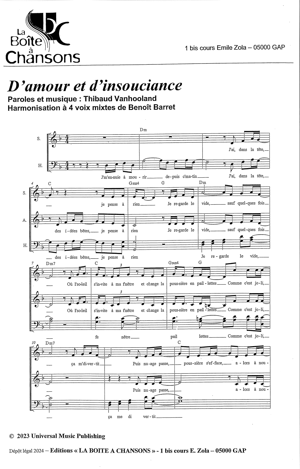 Harmonisation à 4 voix mixtes de Benoît Barret