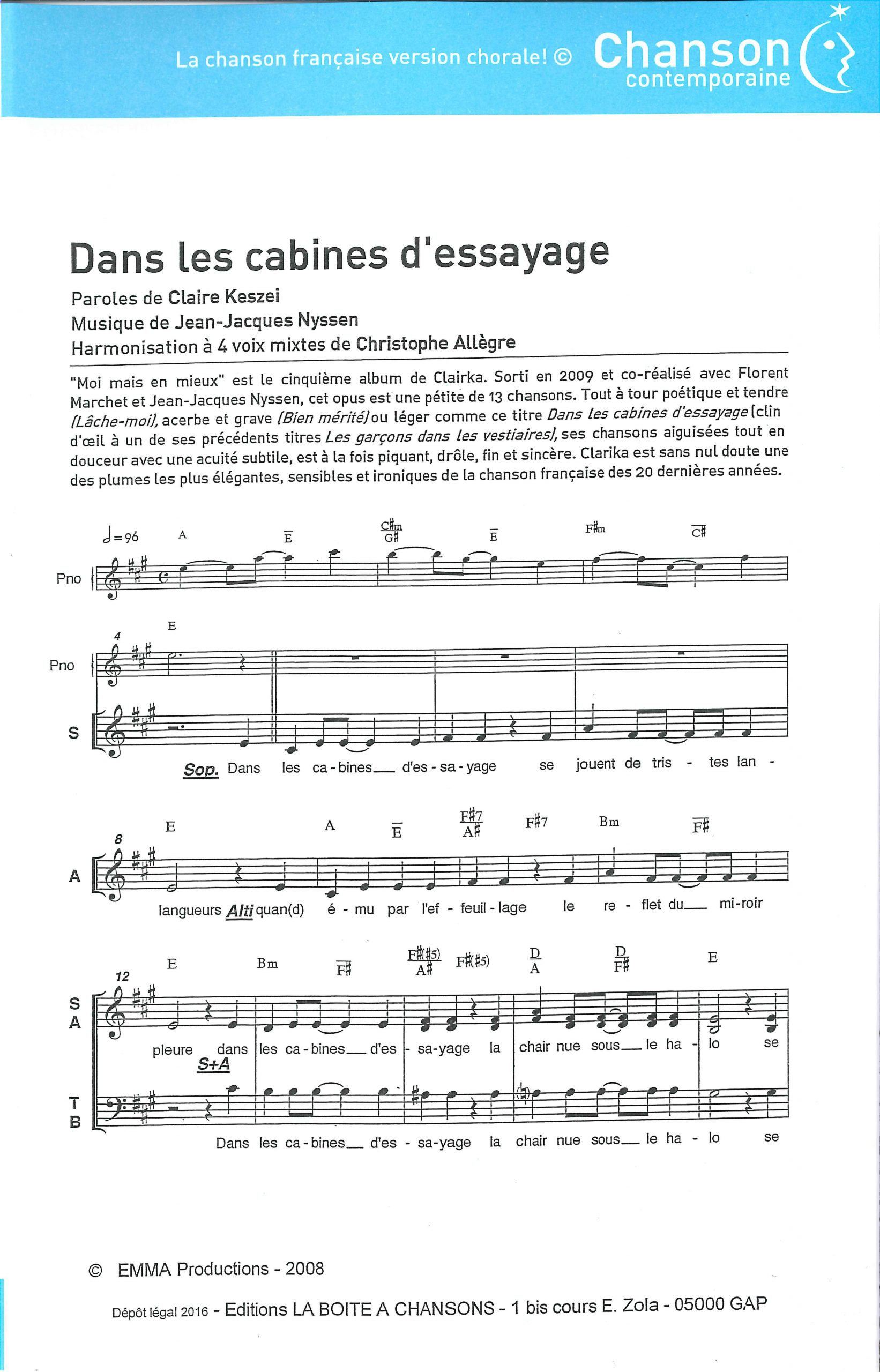 Paroles et musique : C. Keszei / J.J. Nyssen Harmonisation : Christophe ALLEGRE