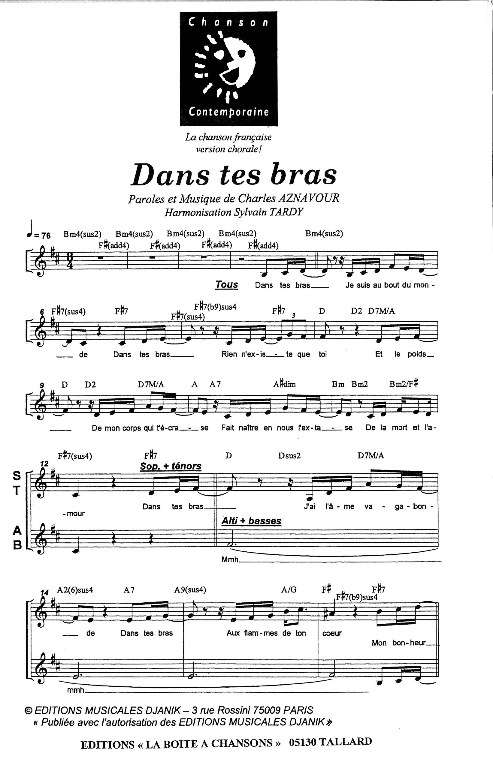 Paroles et musique de AZNAVOUR Harmonisation : Sylvain TARDY