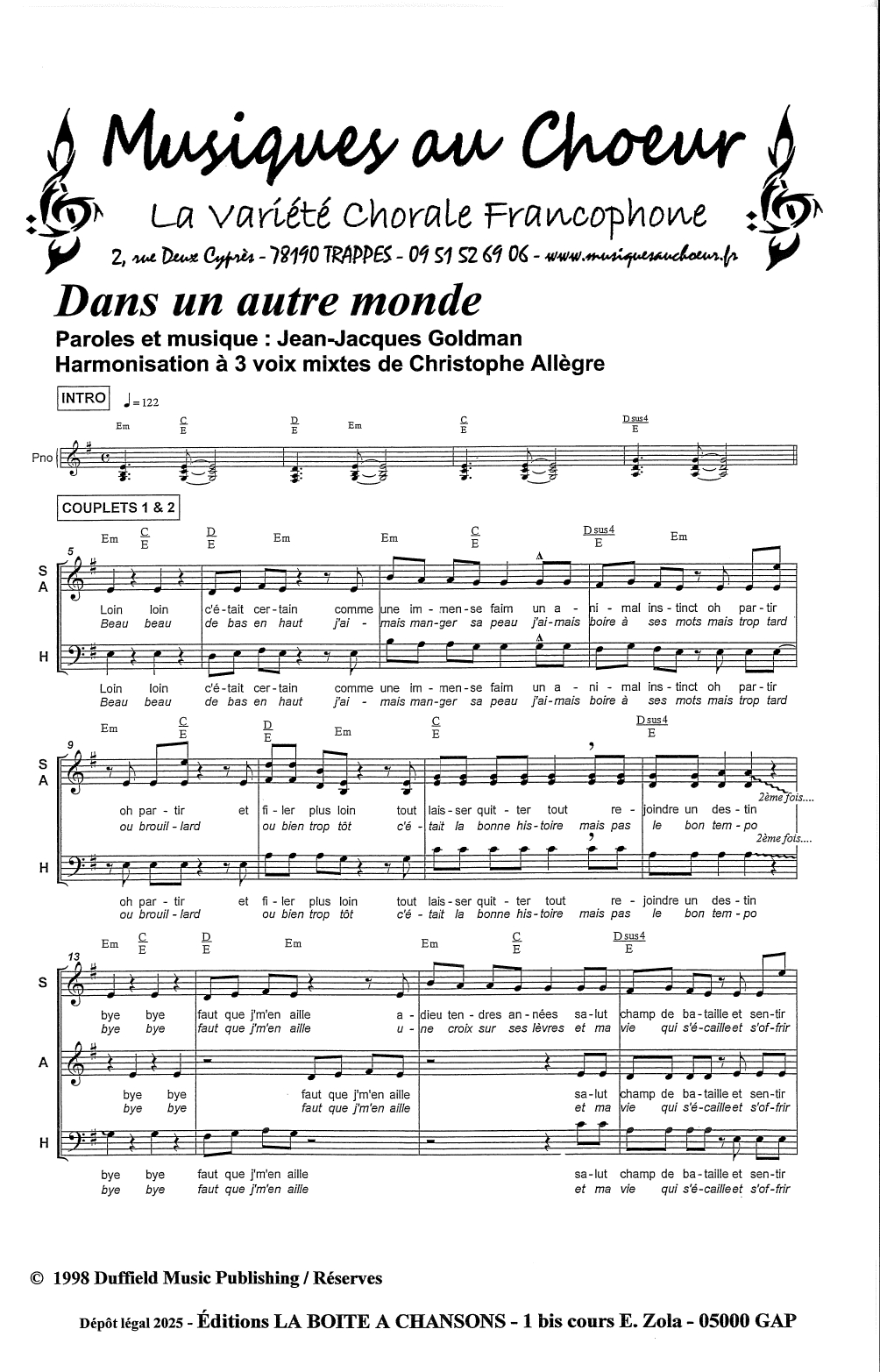 Harmonisation à 3 voix mixtes de Christophe Allègre